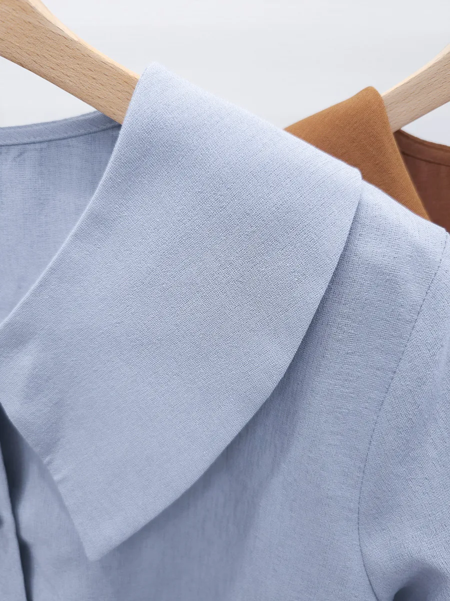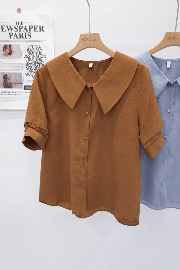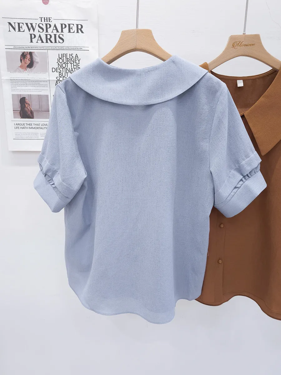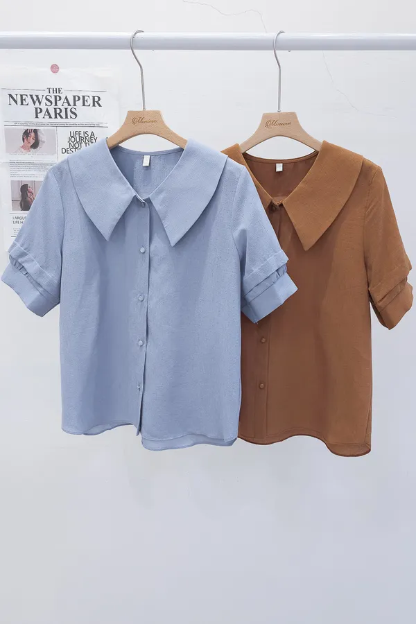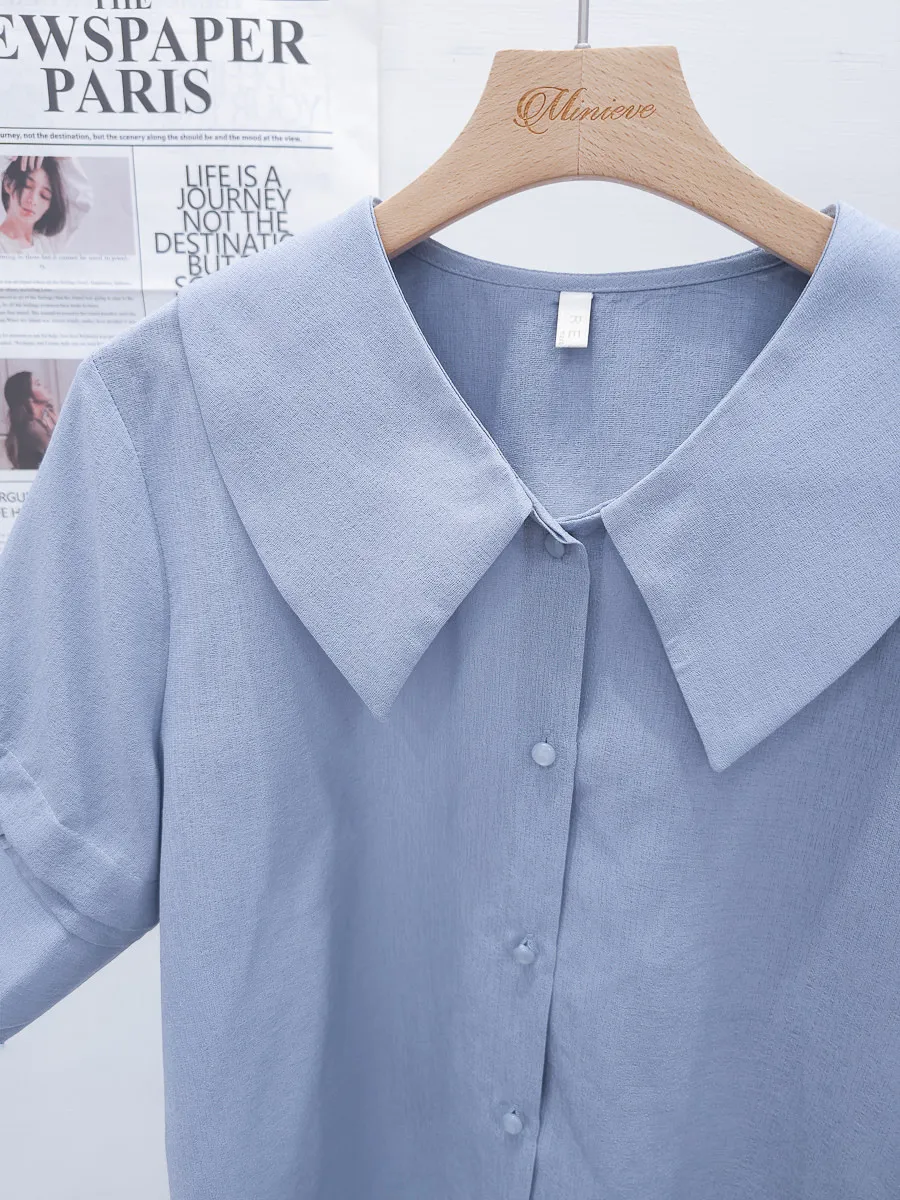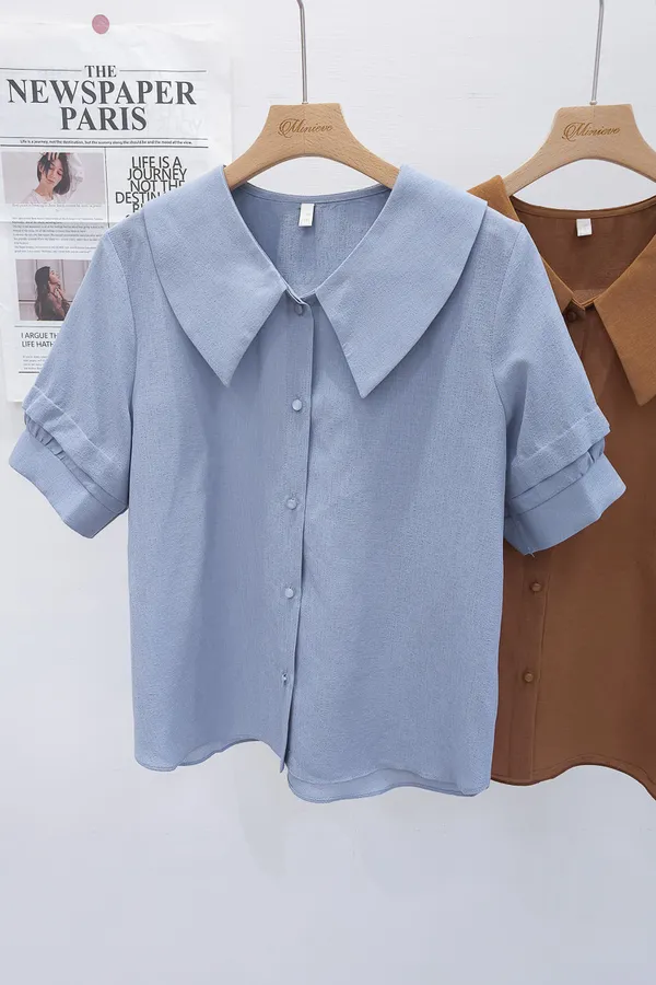 41.正韓 寬翻領內摺袖棉麻衫 2色