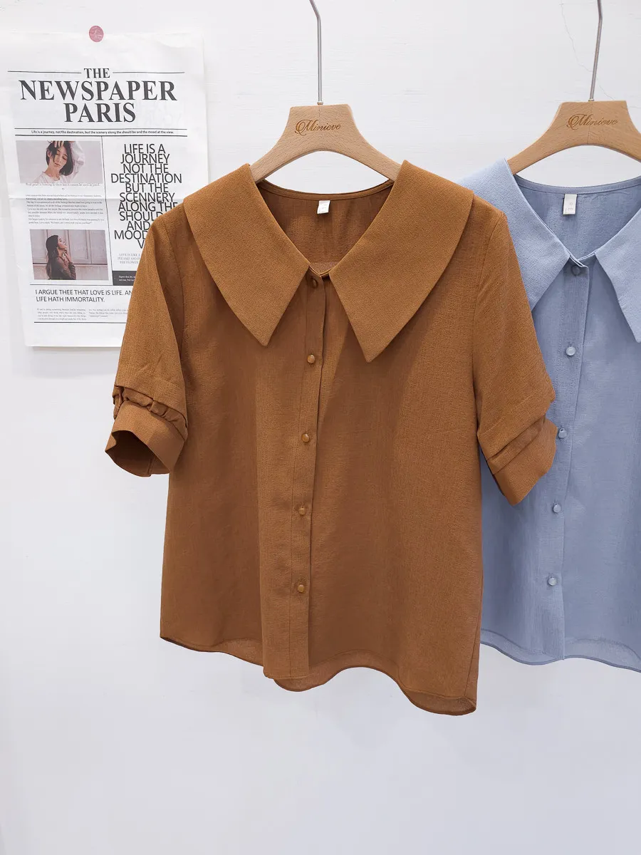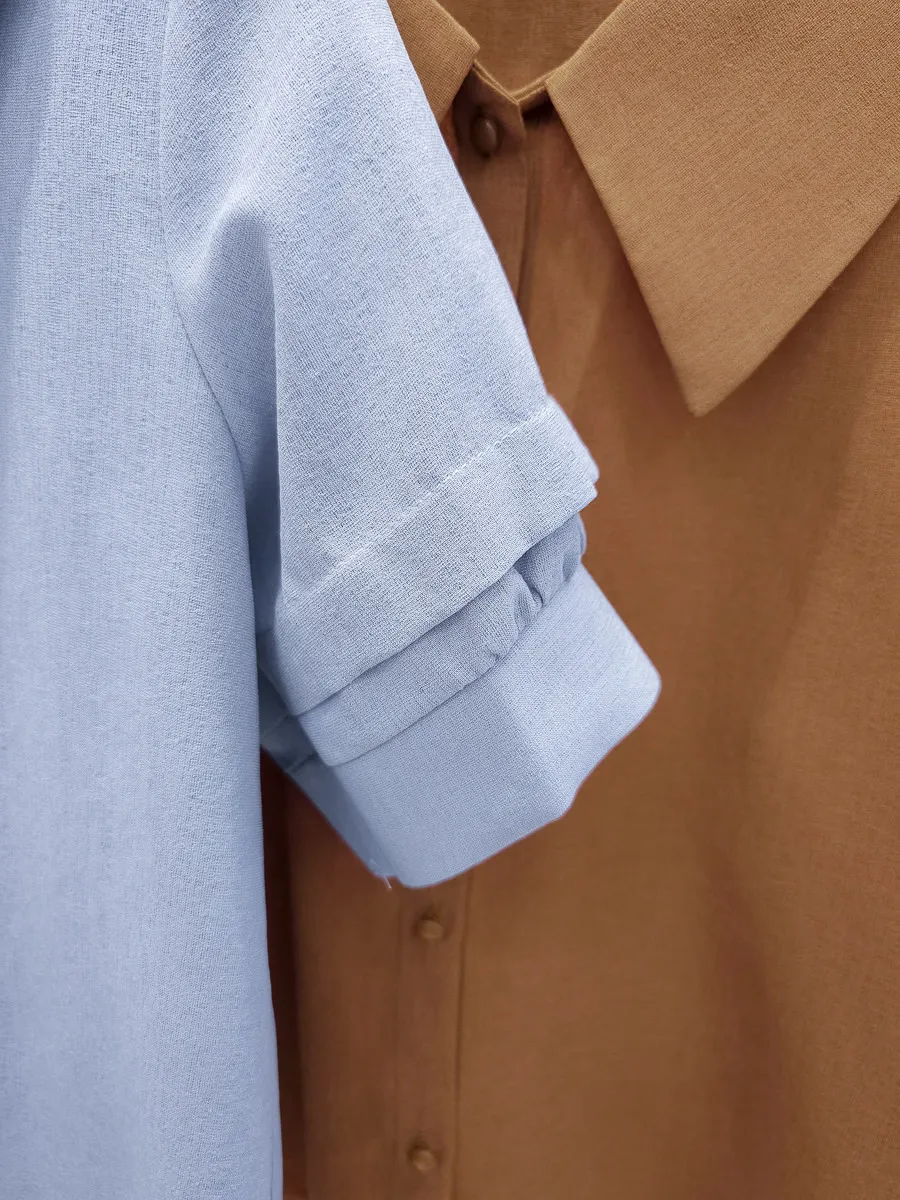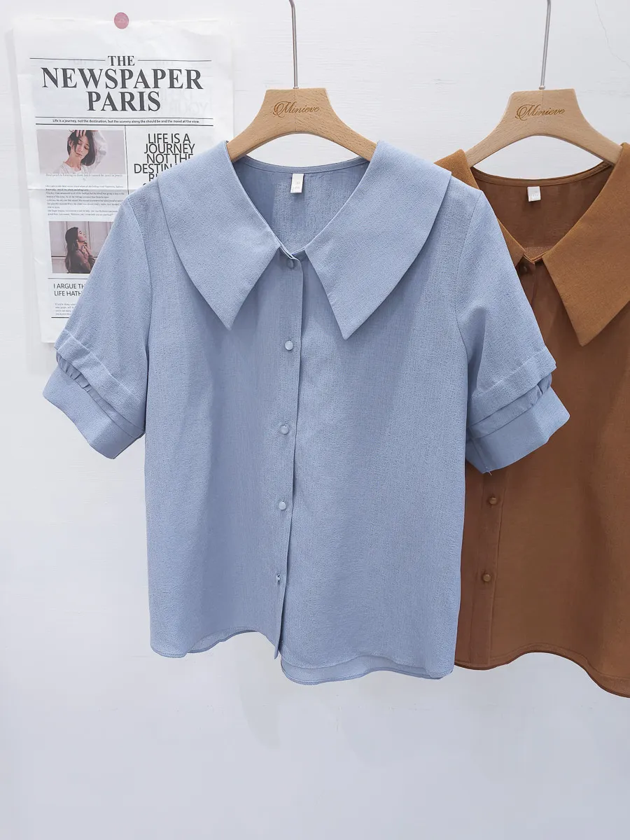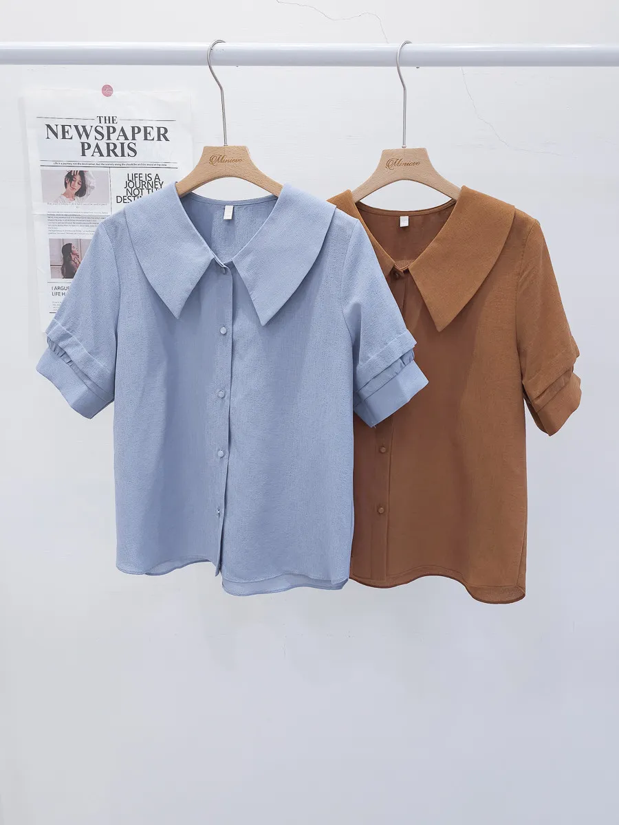 41.正韓 寬翻領內摺袖棉麻衫 2色
