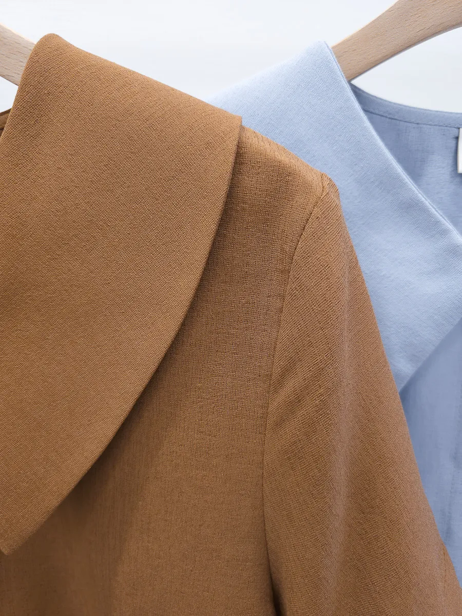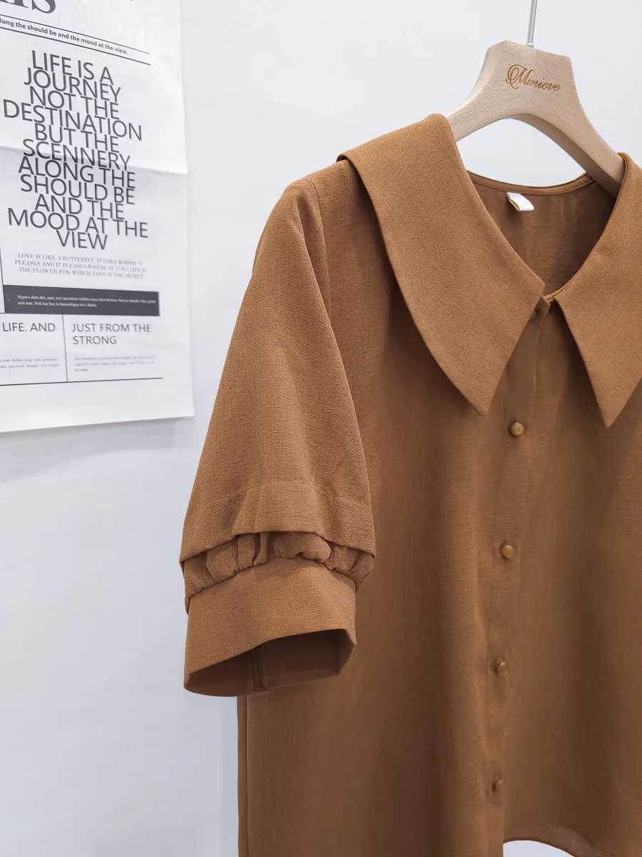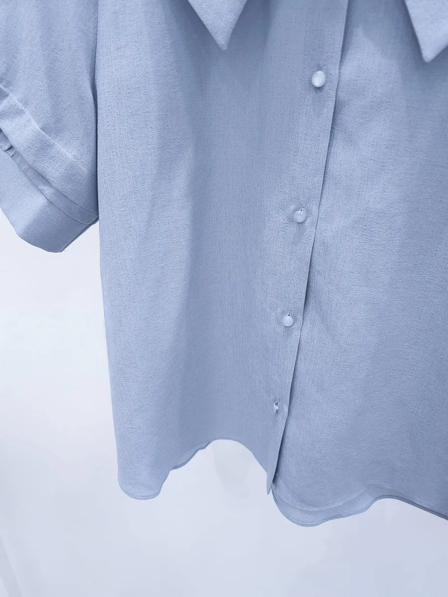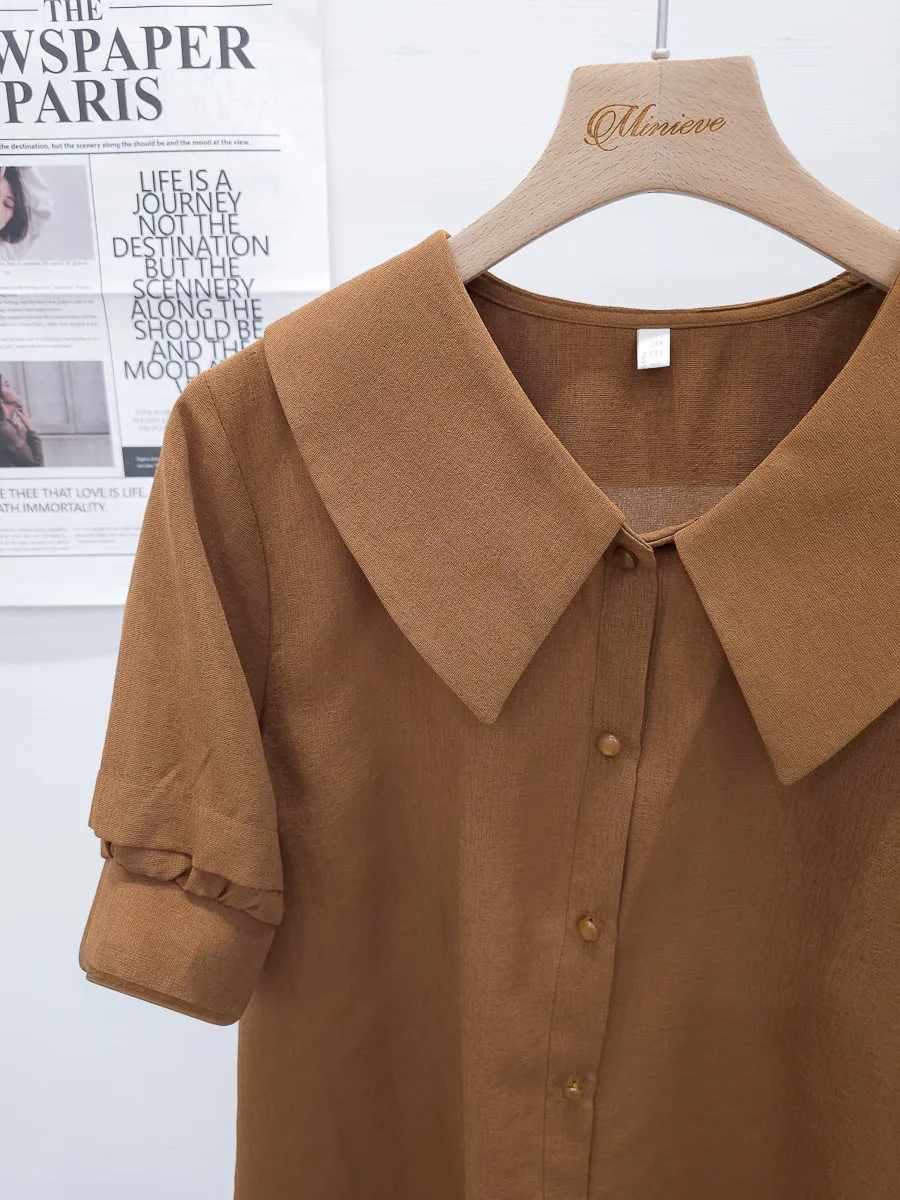 41.正韓 寬翻領內摺袖棉麻衫 2色