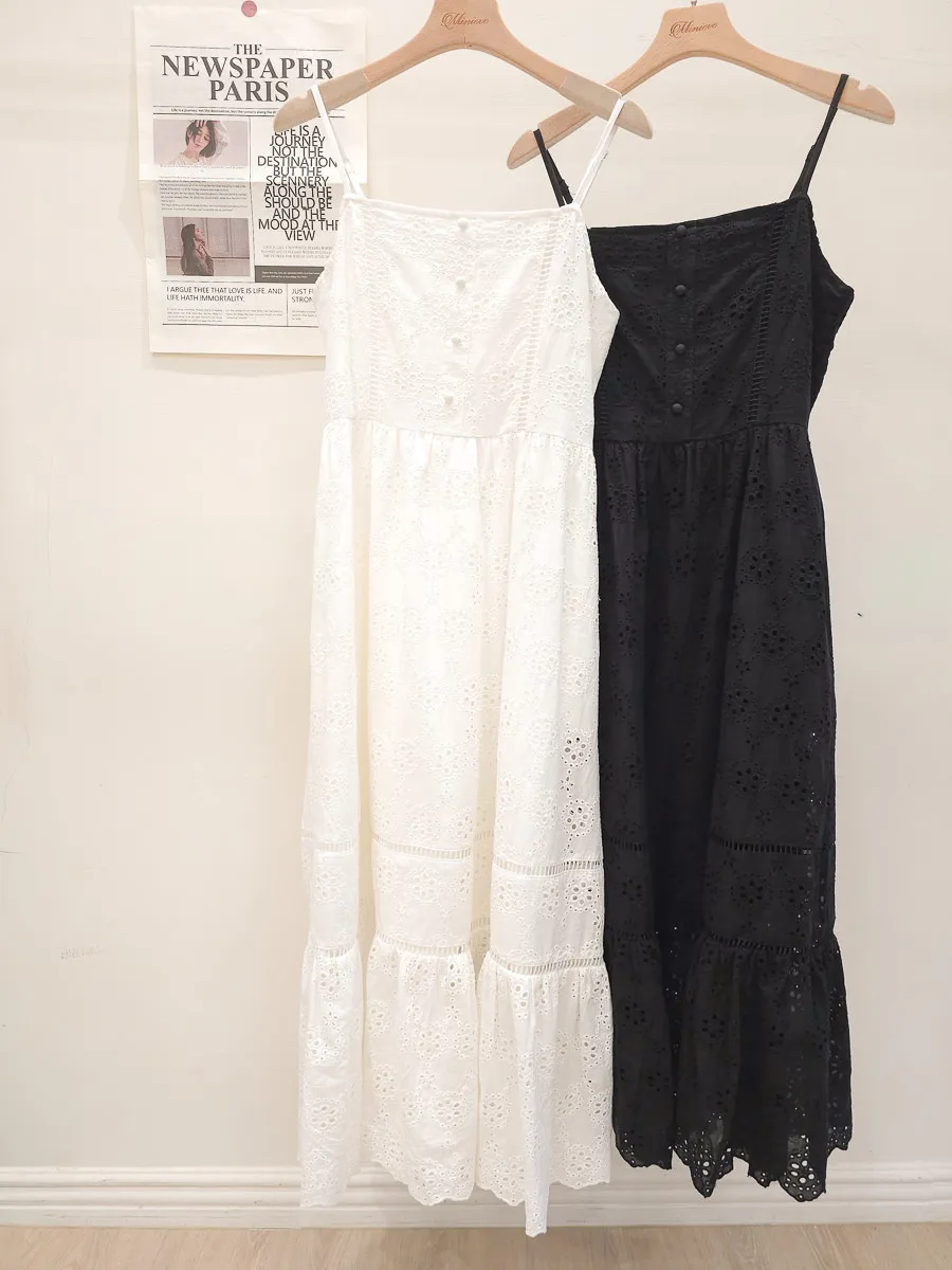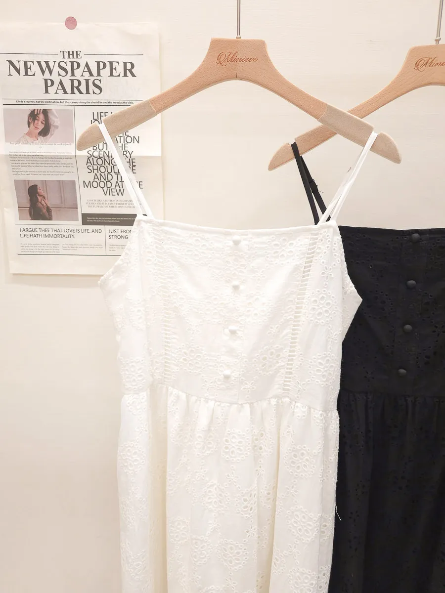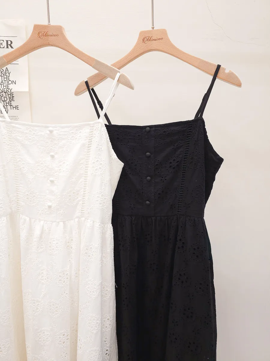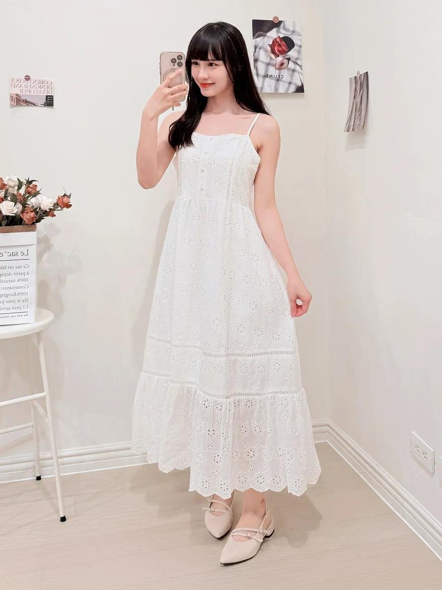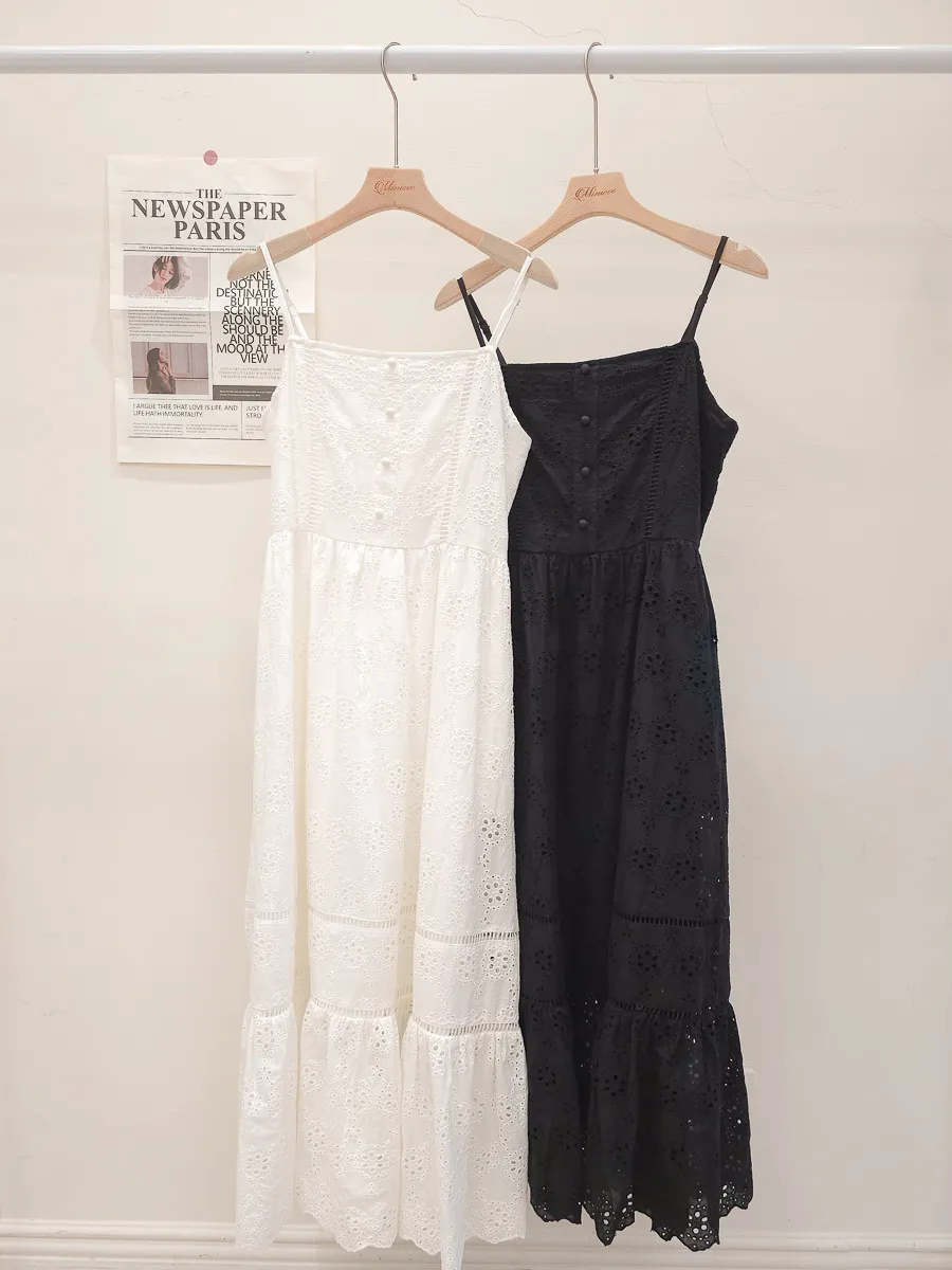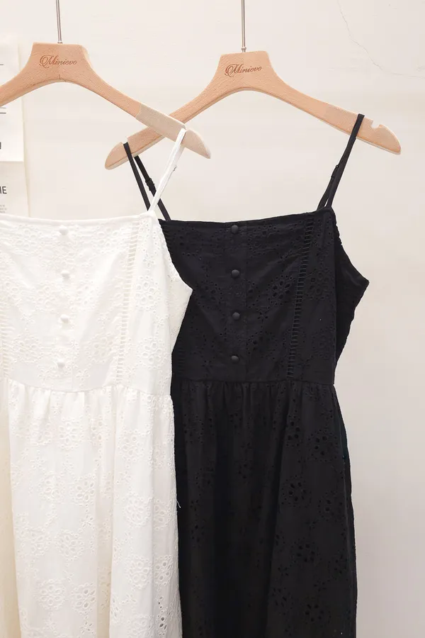 可調肩帶小釦緹花蕾絲洋裝 2色