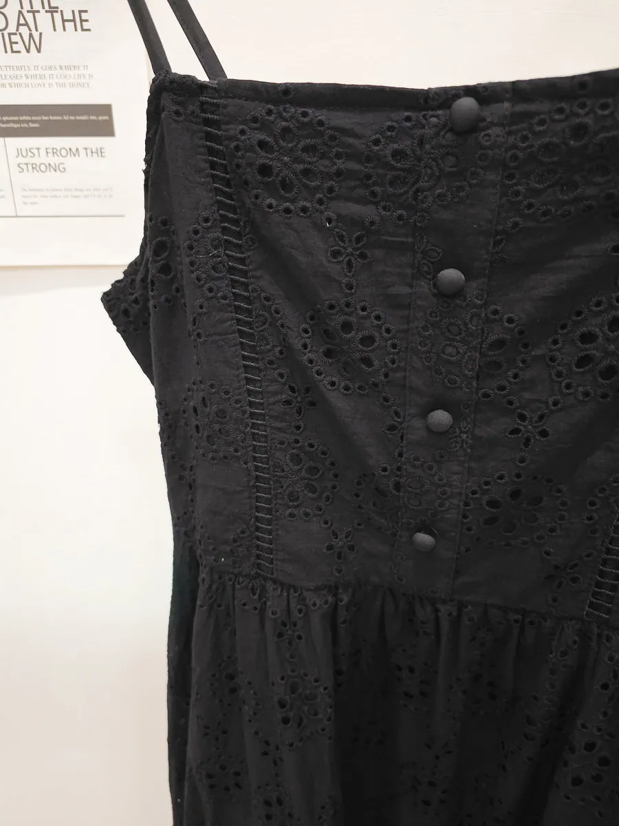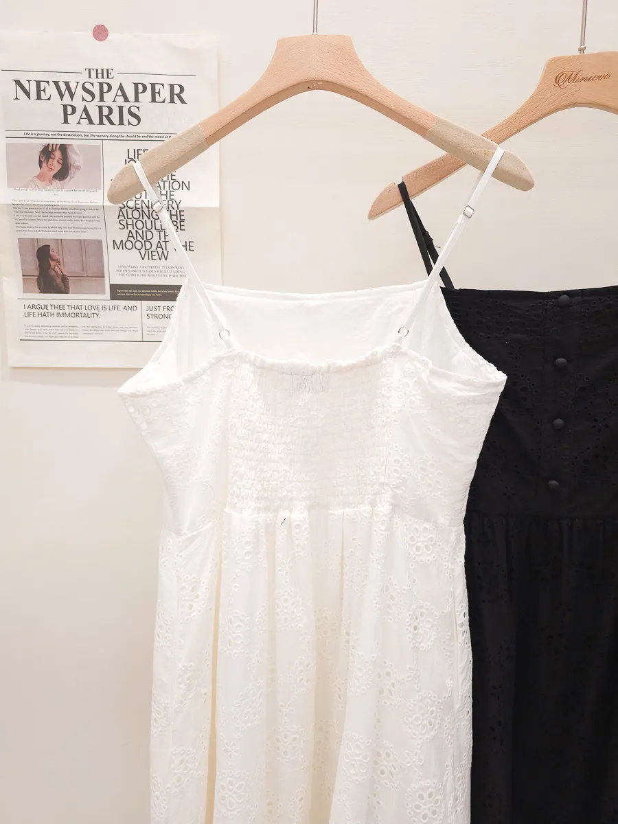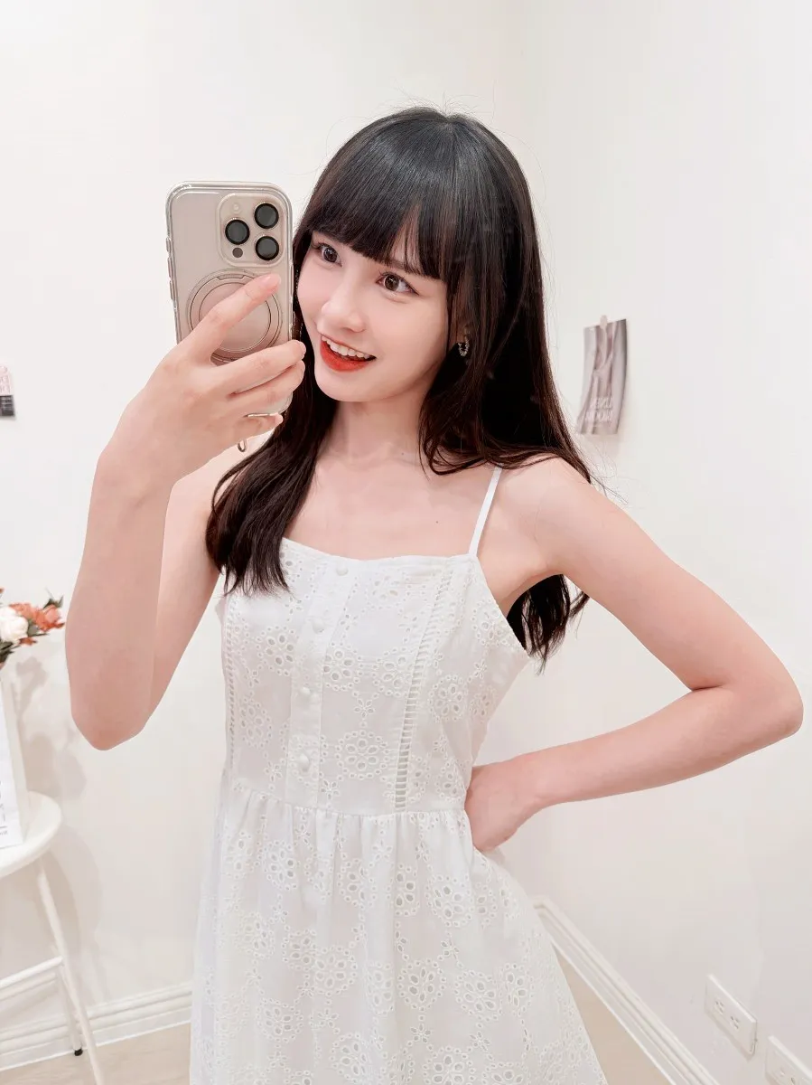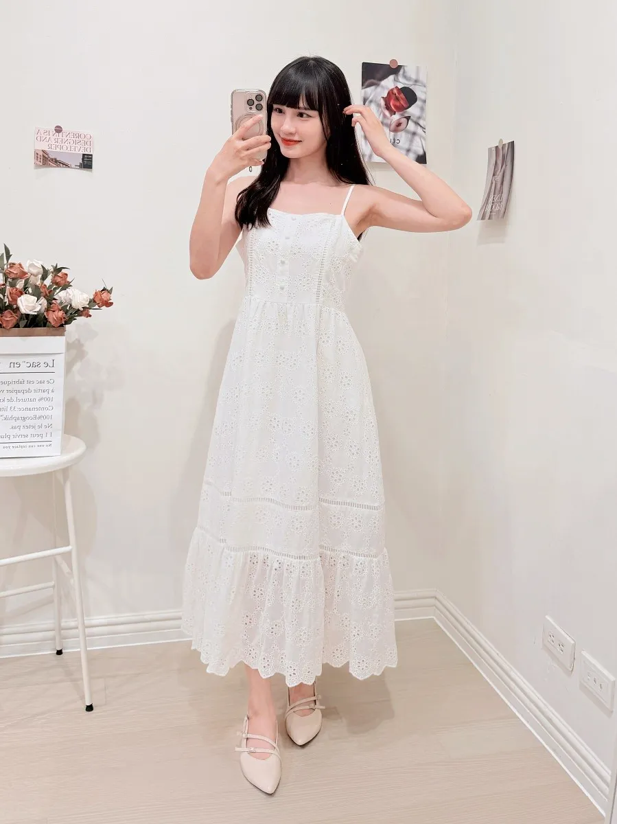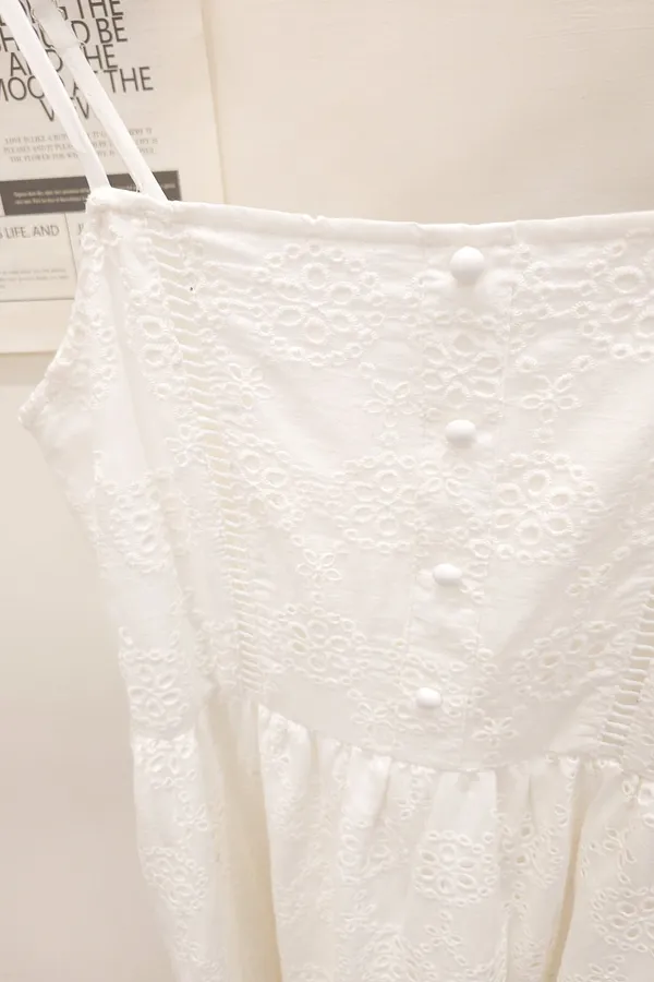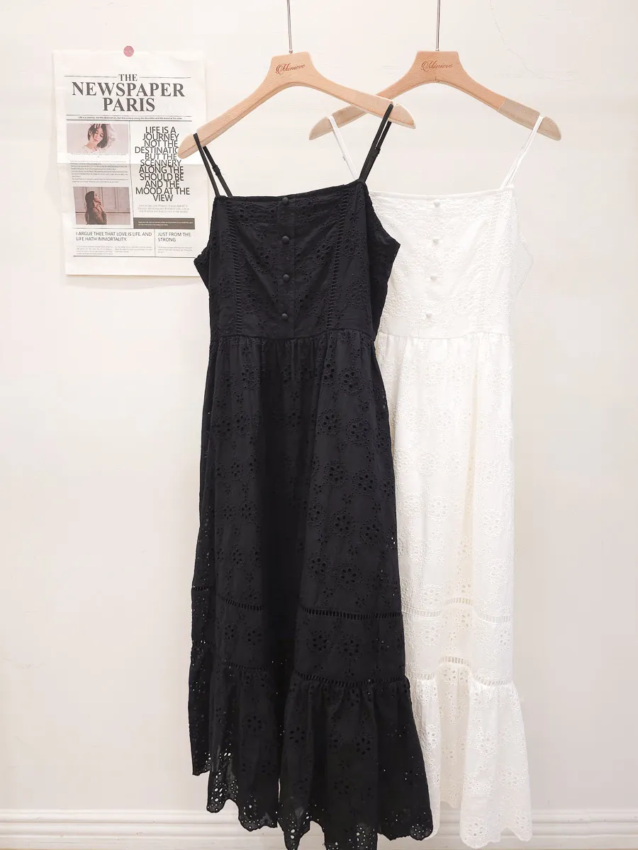 可調肩帶小釦緹花蕾絲洋裝 2色