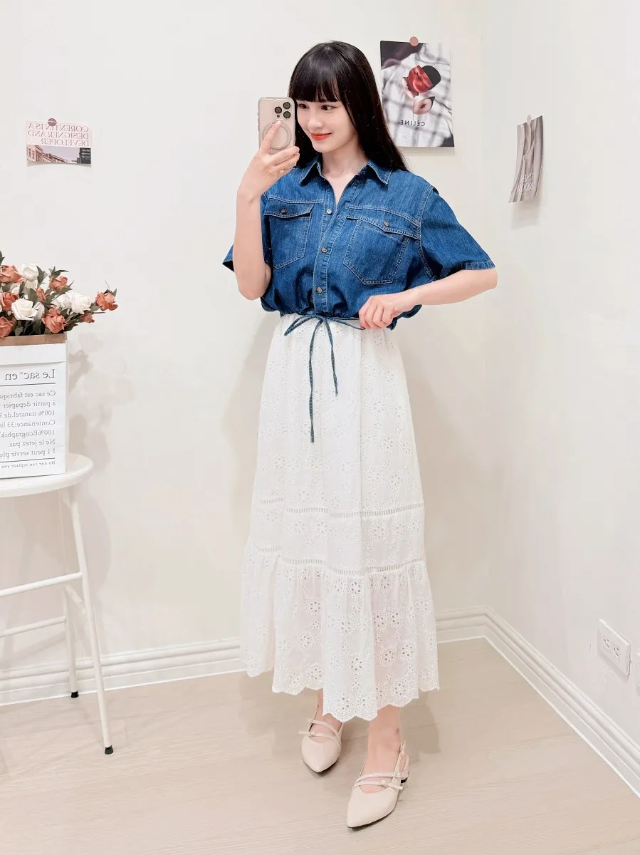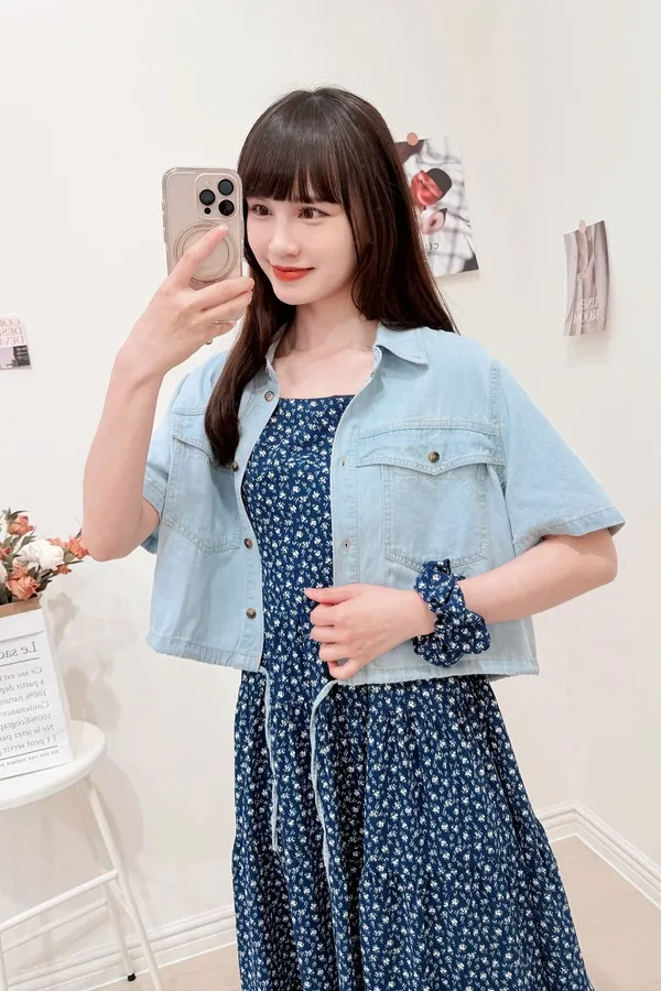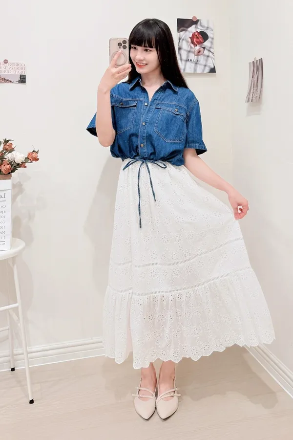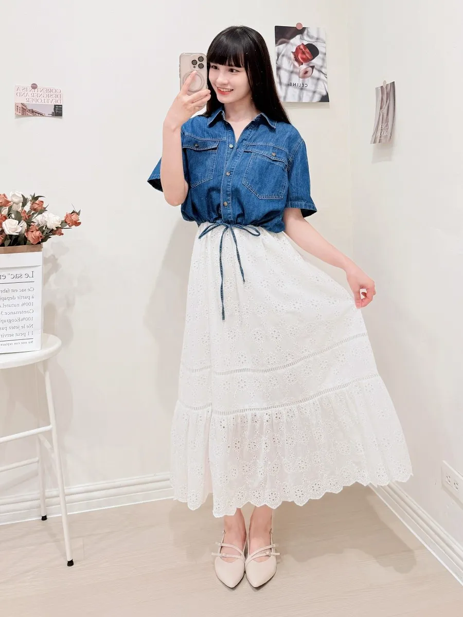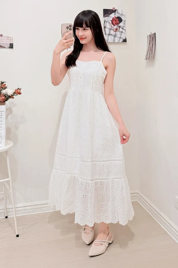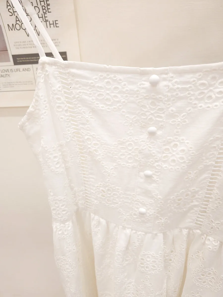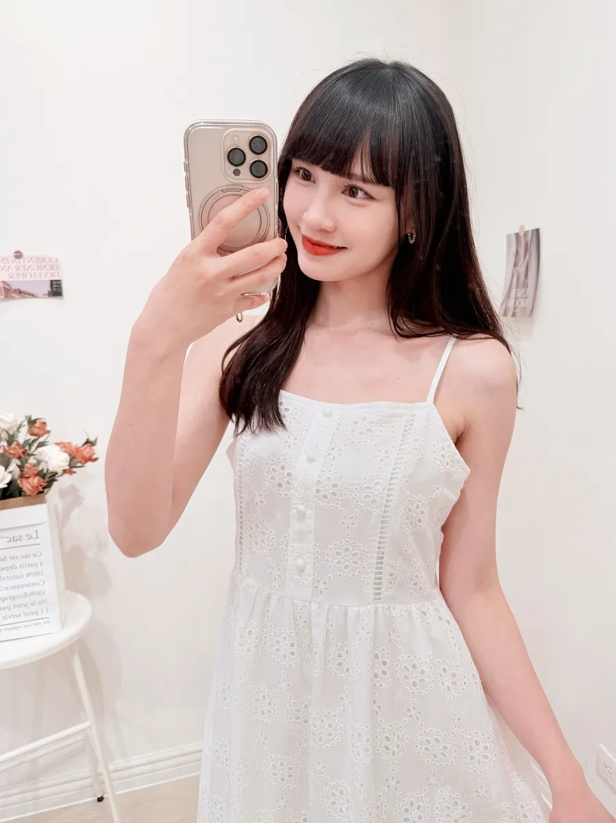 可調肩帶小釦緹花蕾絲洋裝 2色