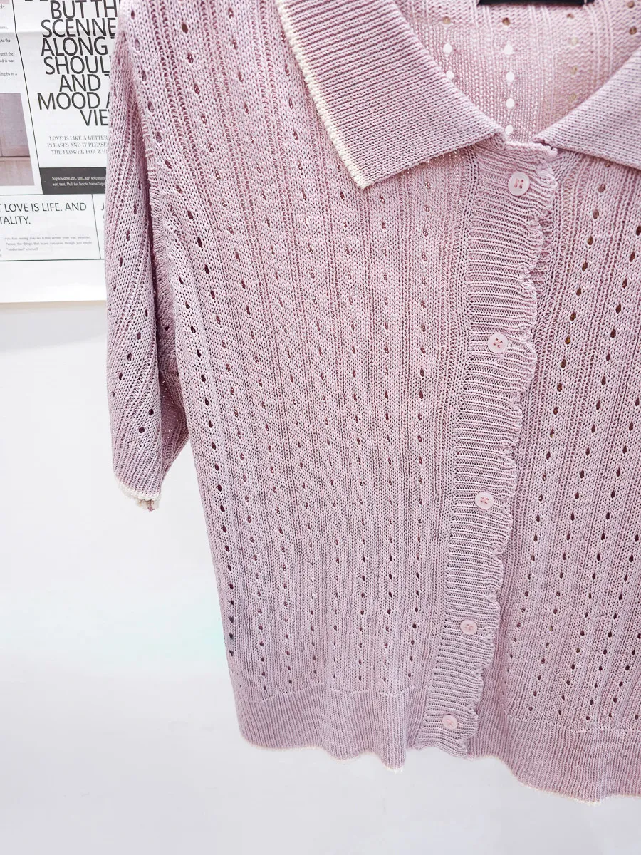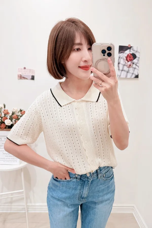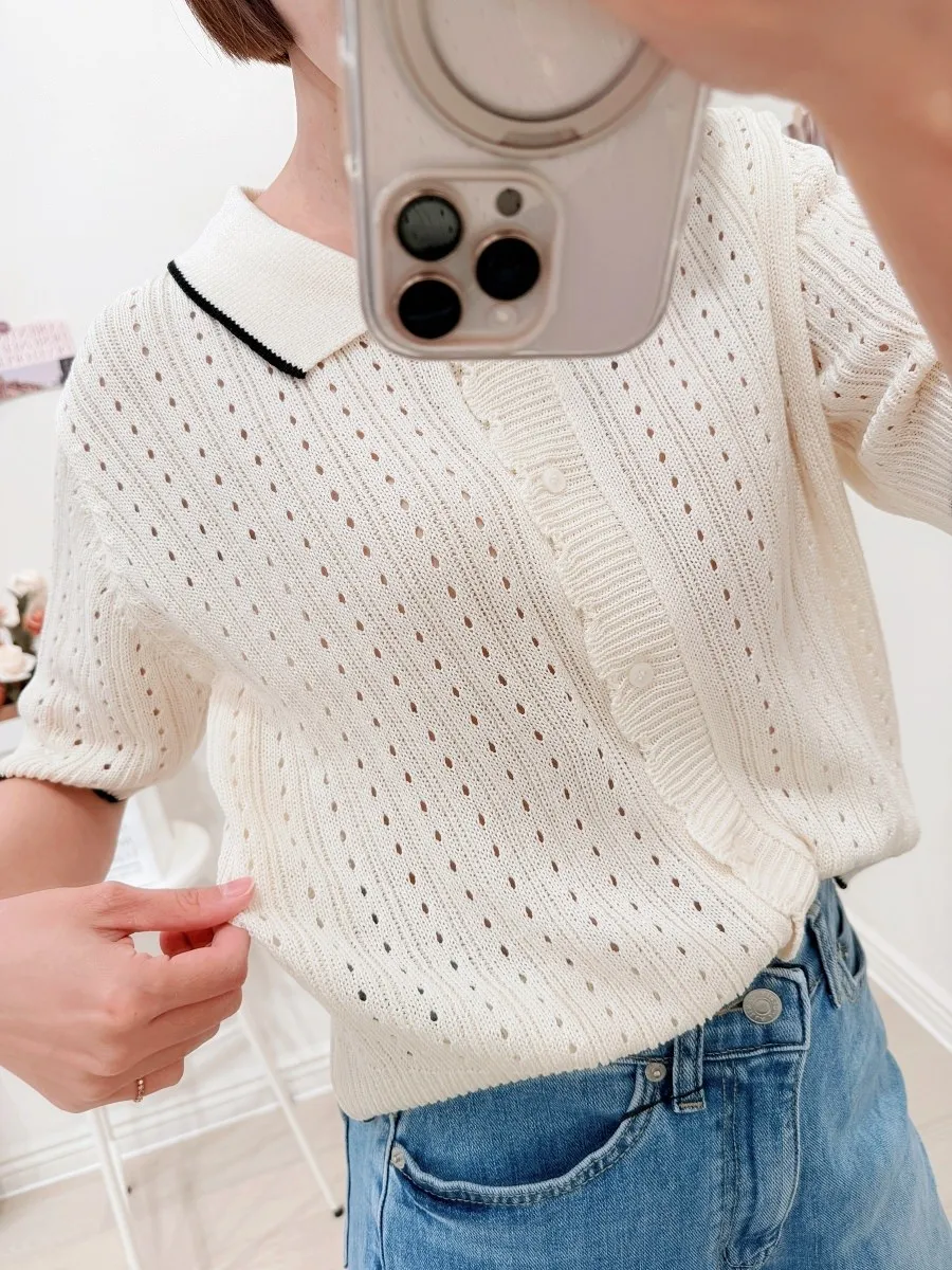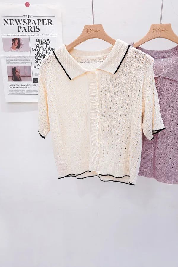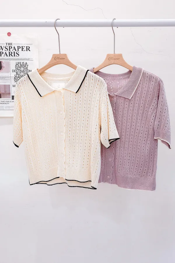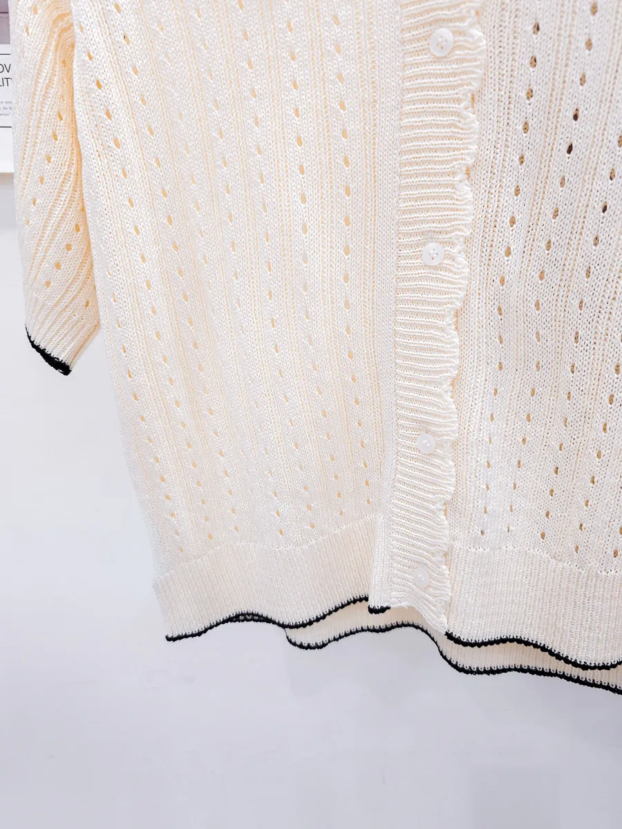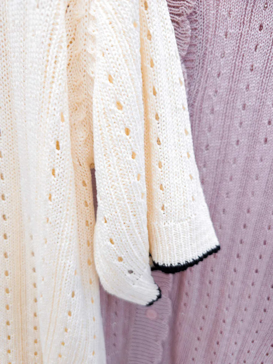 54.正韓 撞色滾邊洞洞針織開衫 2色