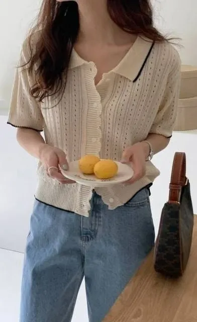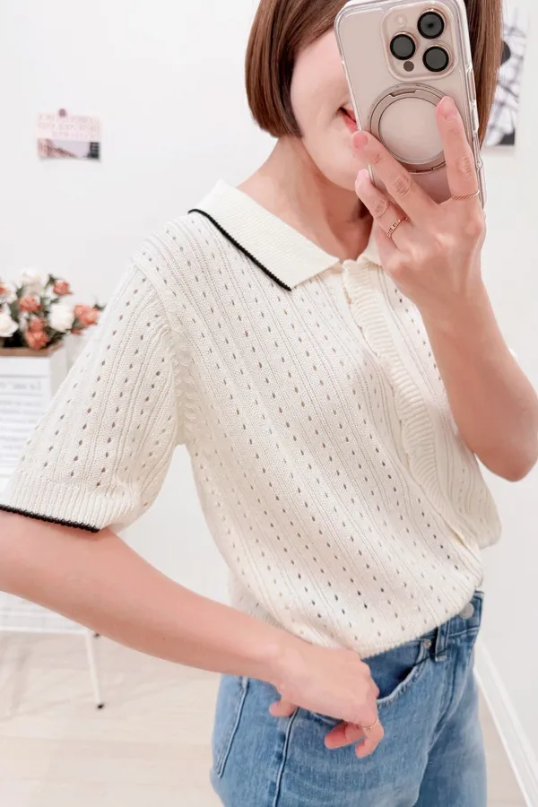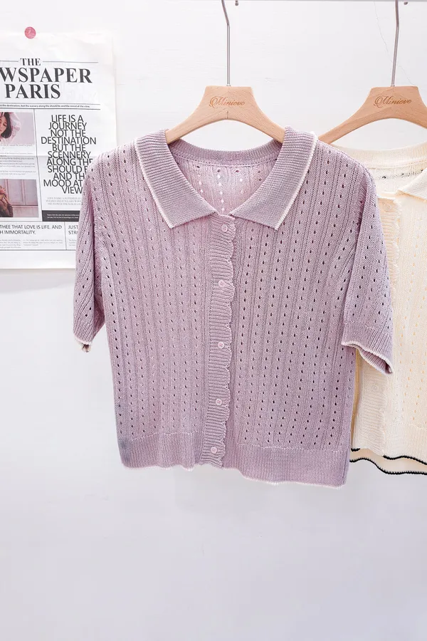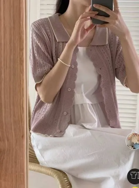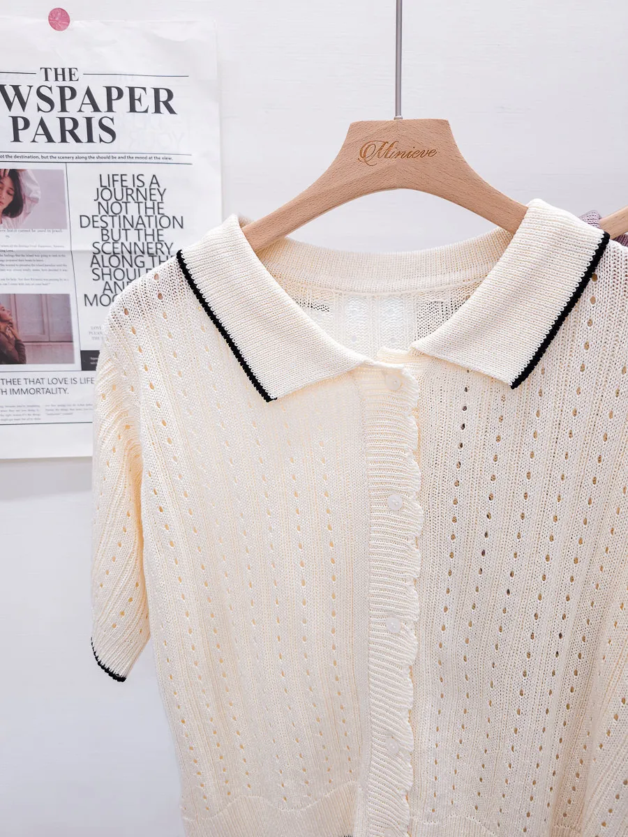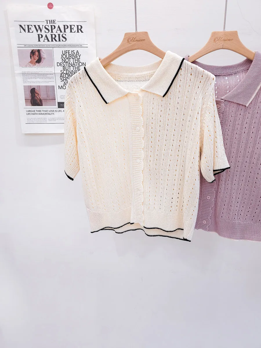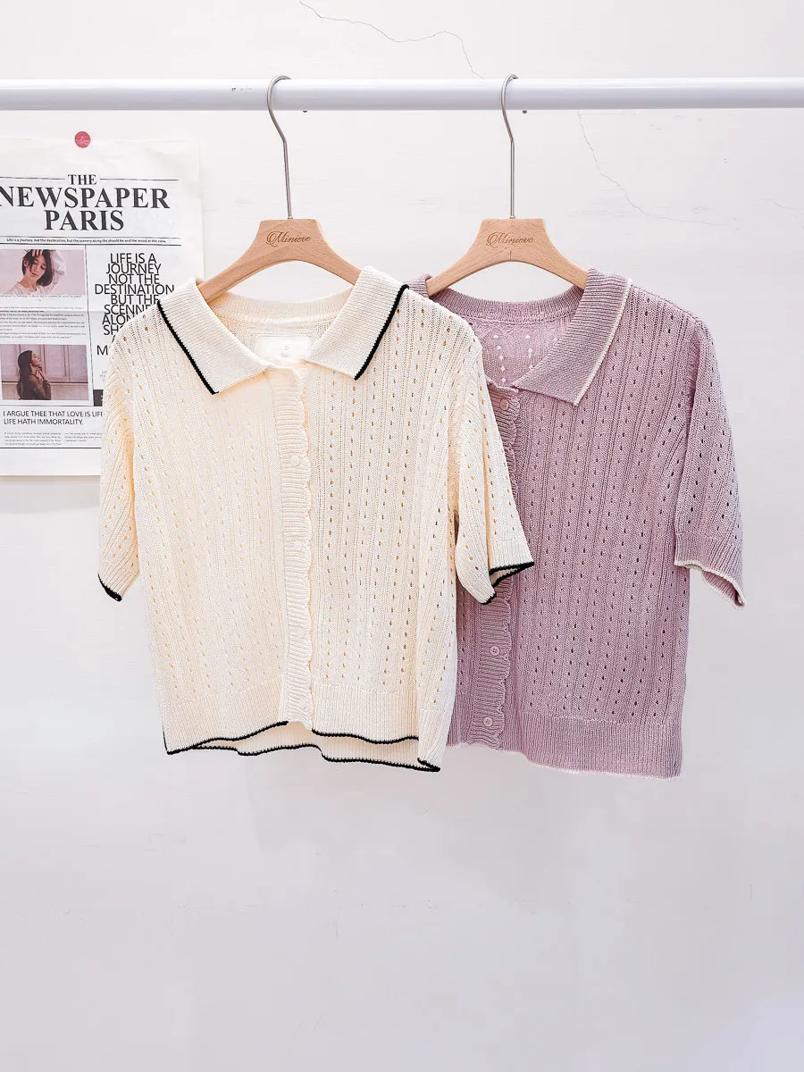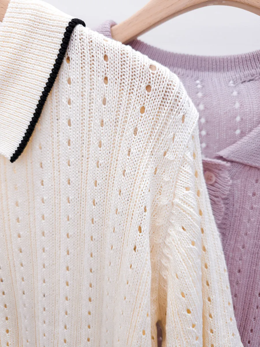 54.正韓 撞色滾邊洞洞針織開衫 2色
