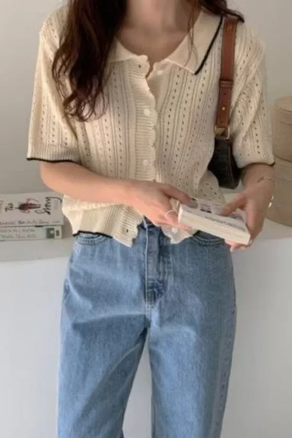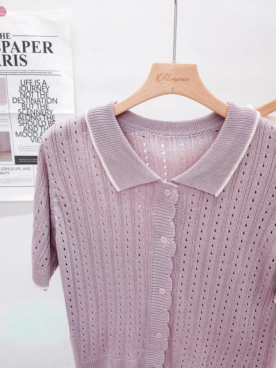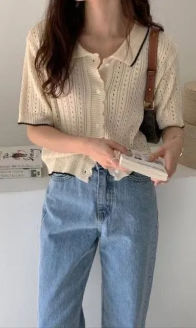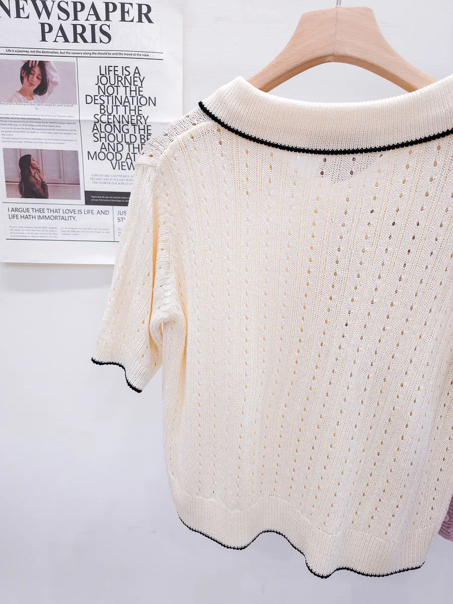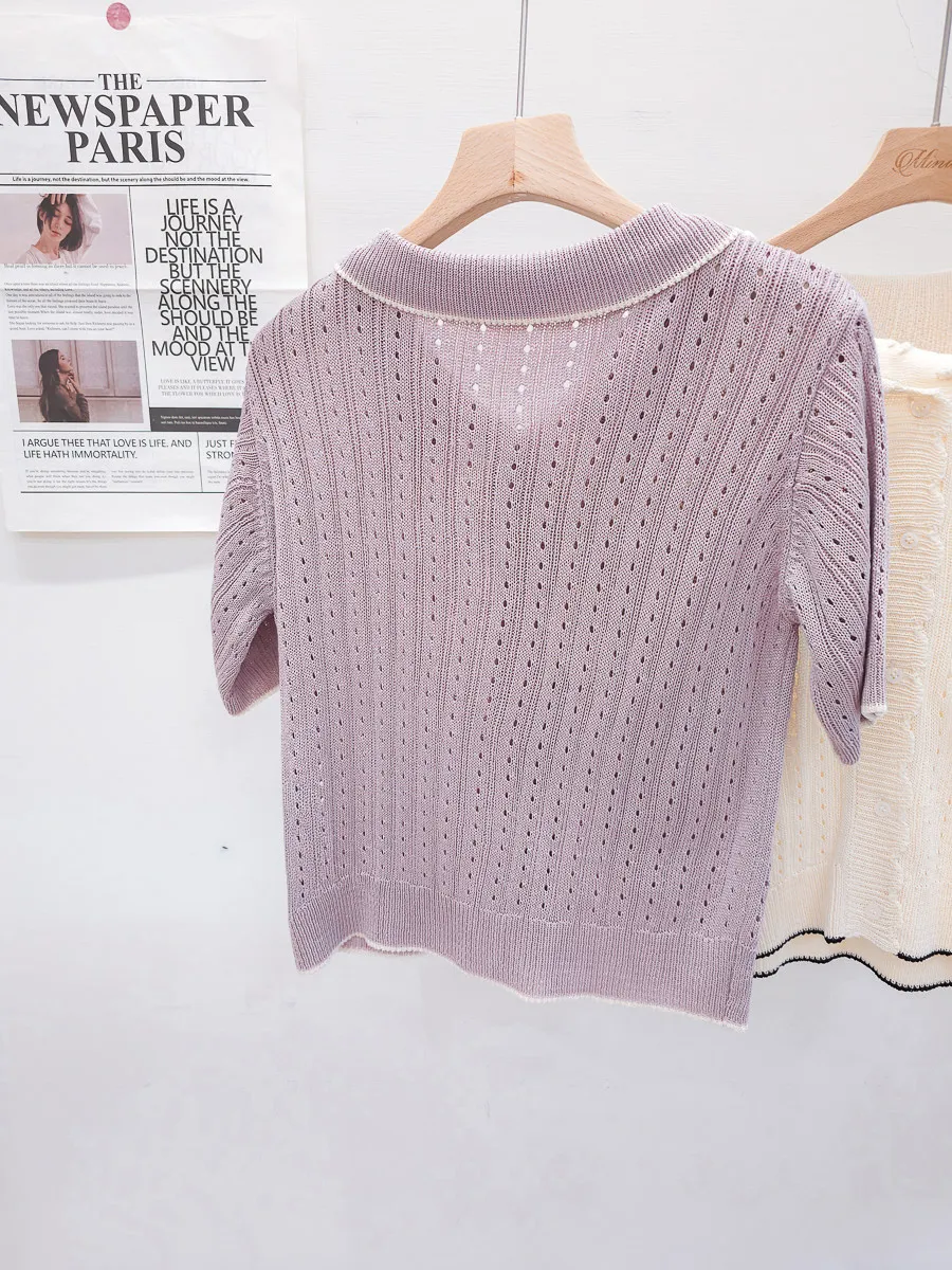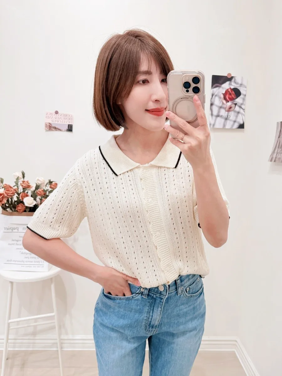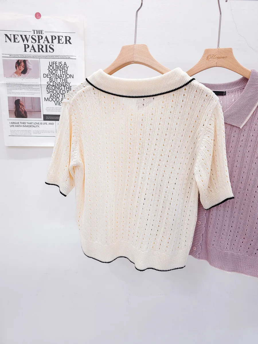 54.正韓 撞色滾邊洞洞針織開衫 2色