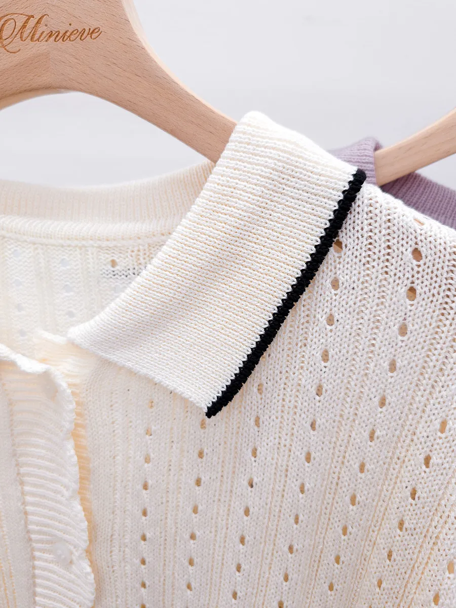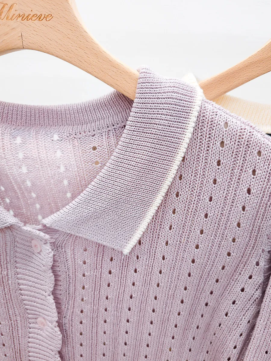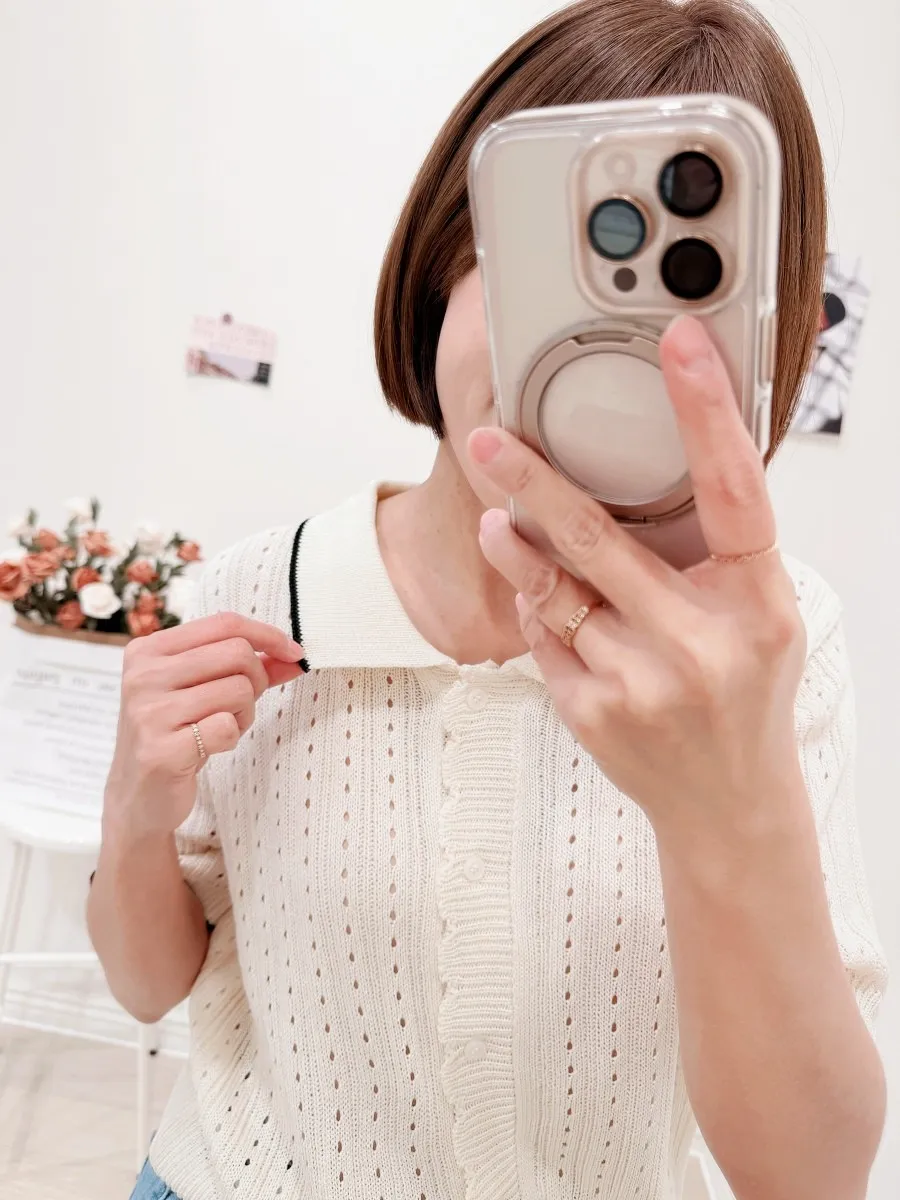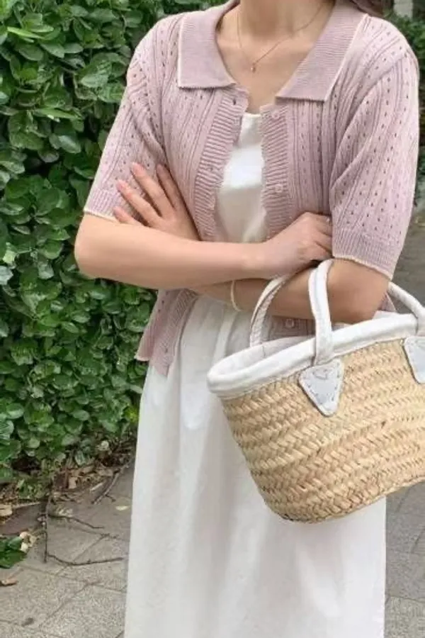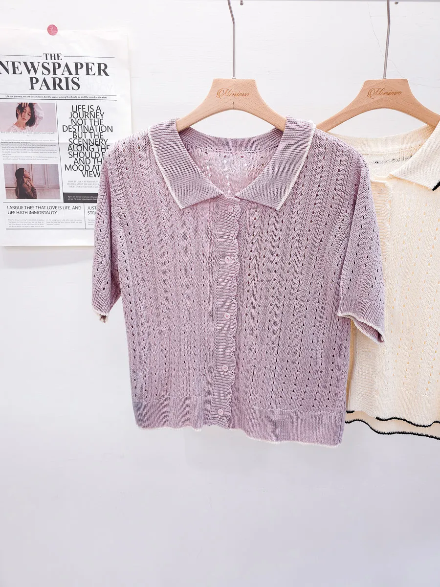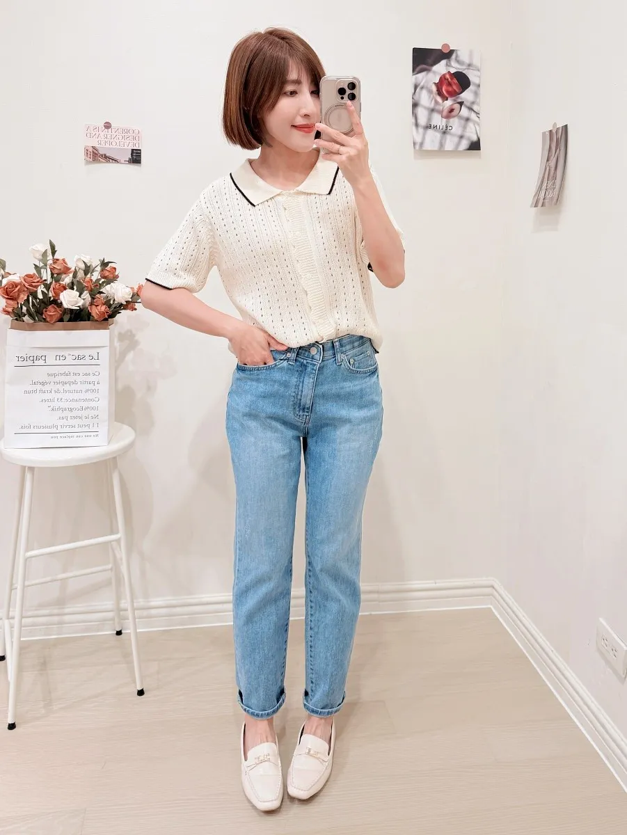 54.正韓 撞色滾邊洞洞針織開衫 2色