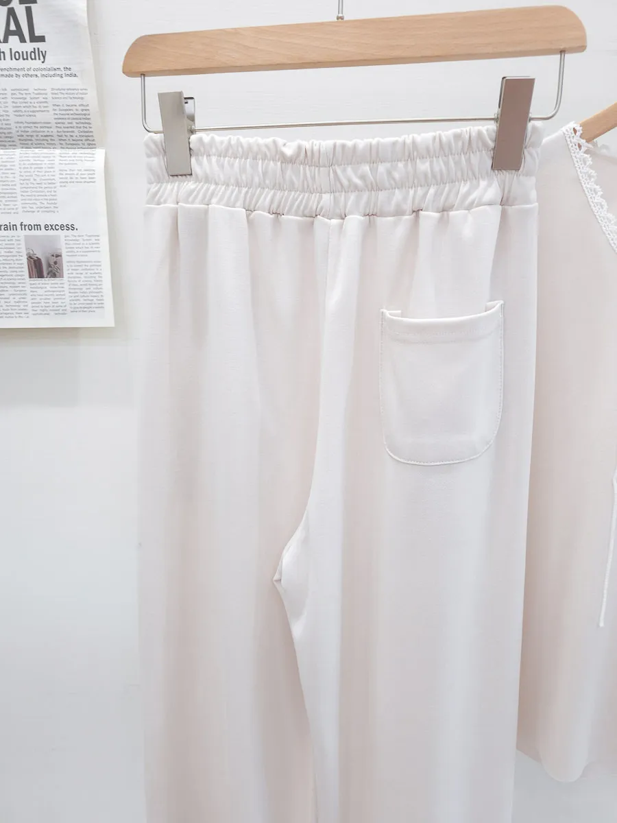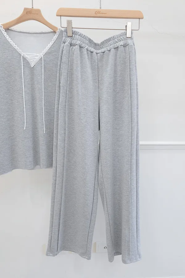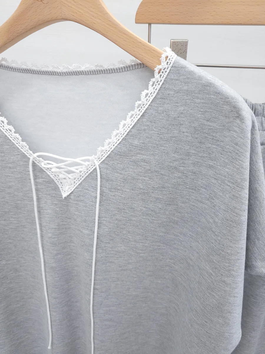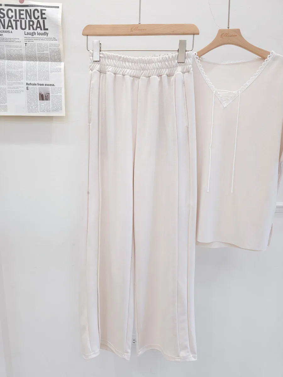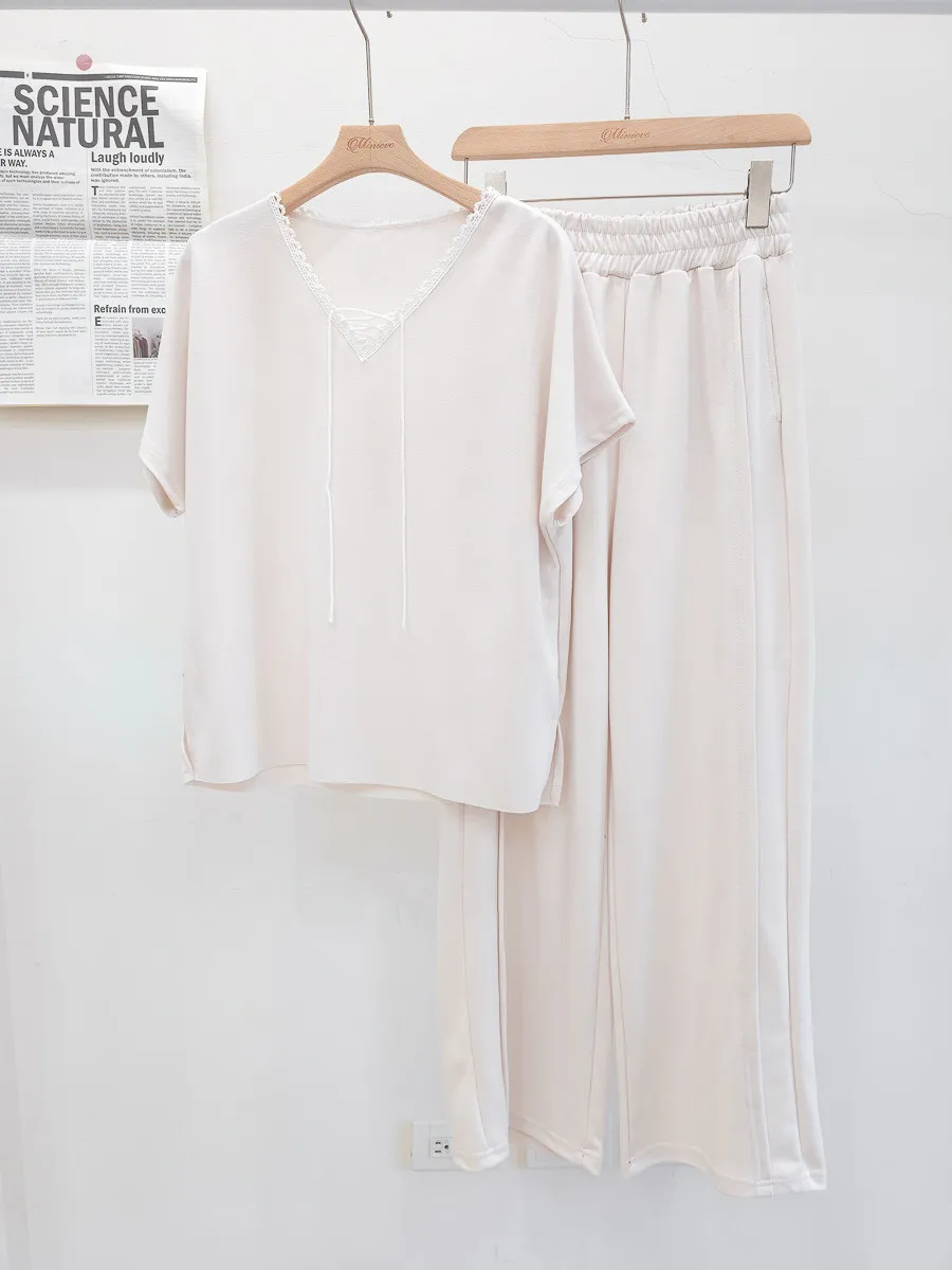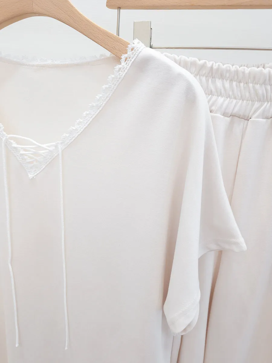 64.正韓 花邊綁帶領上衣棉褲Set 2色