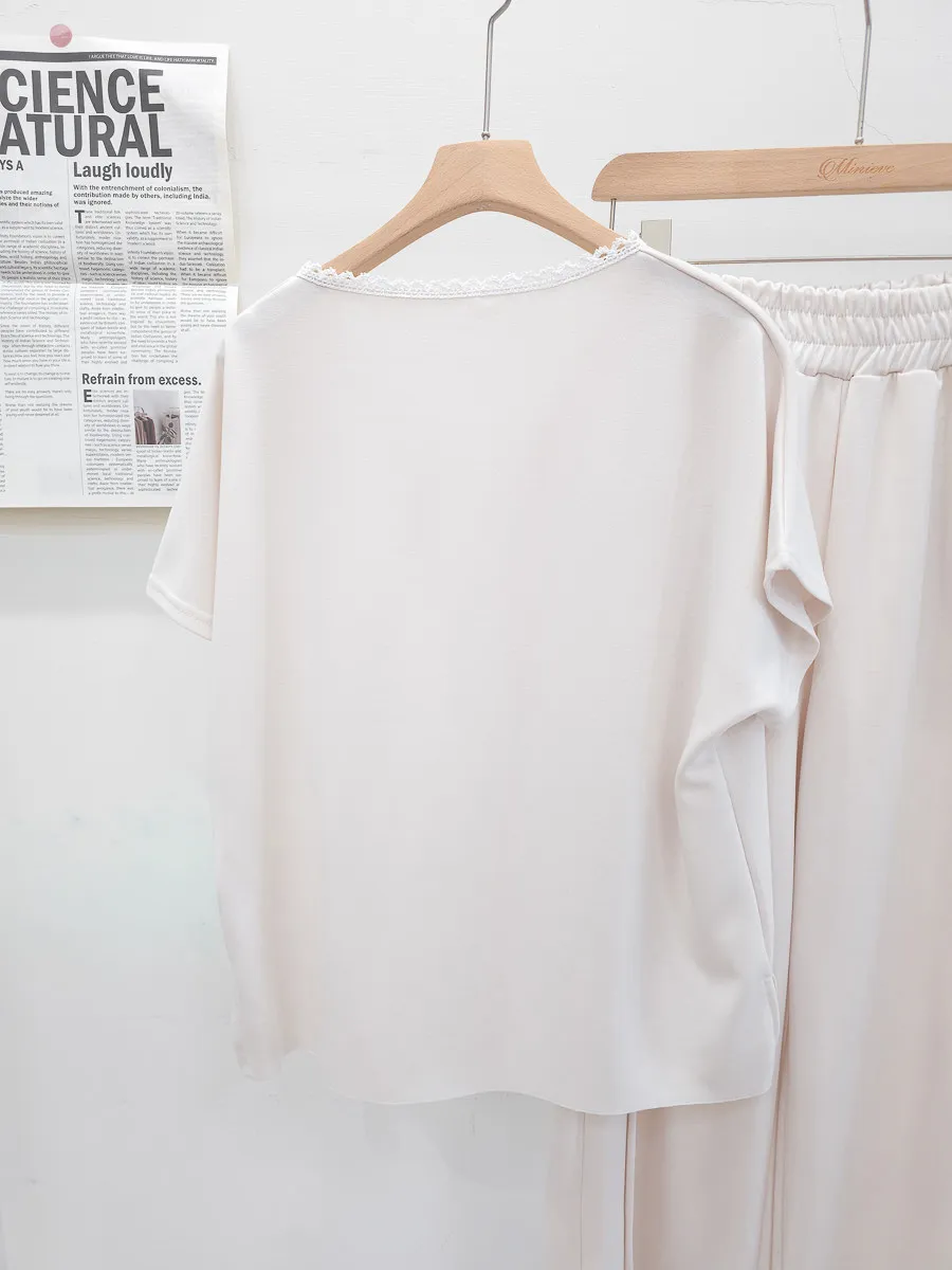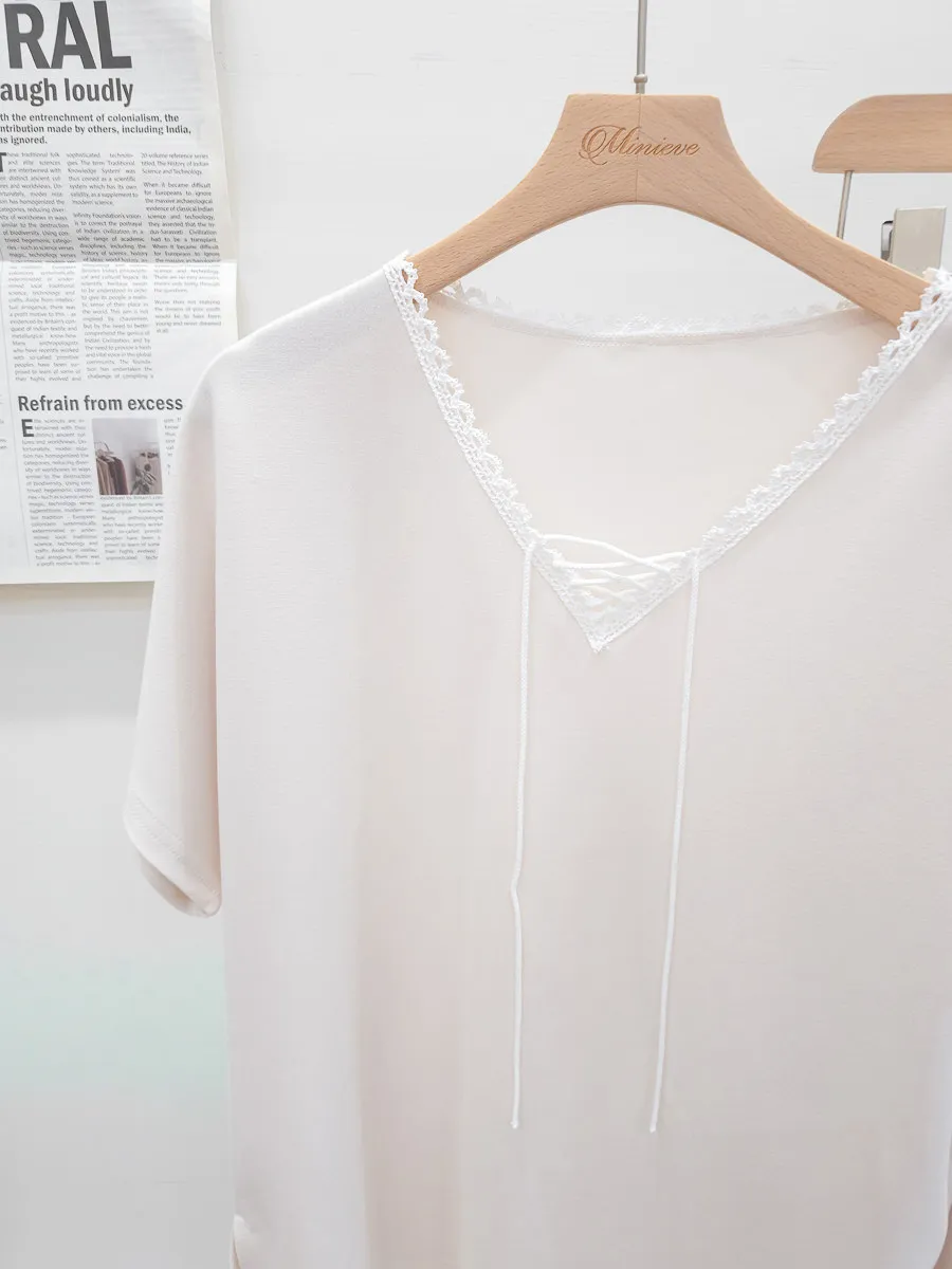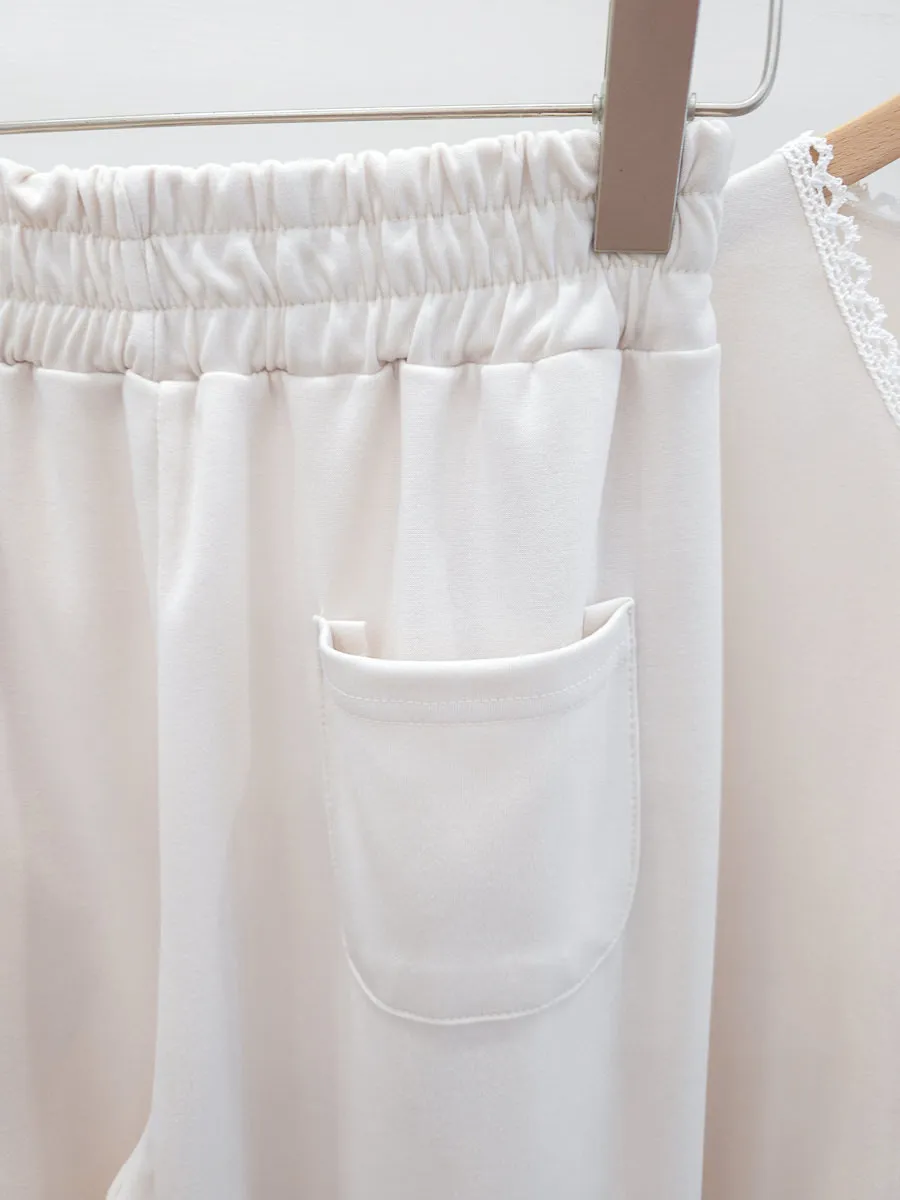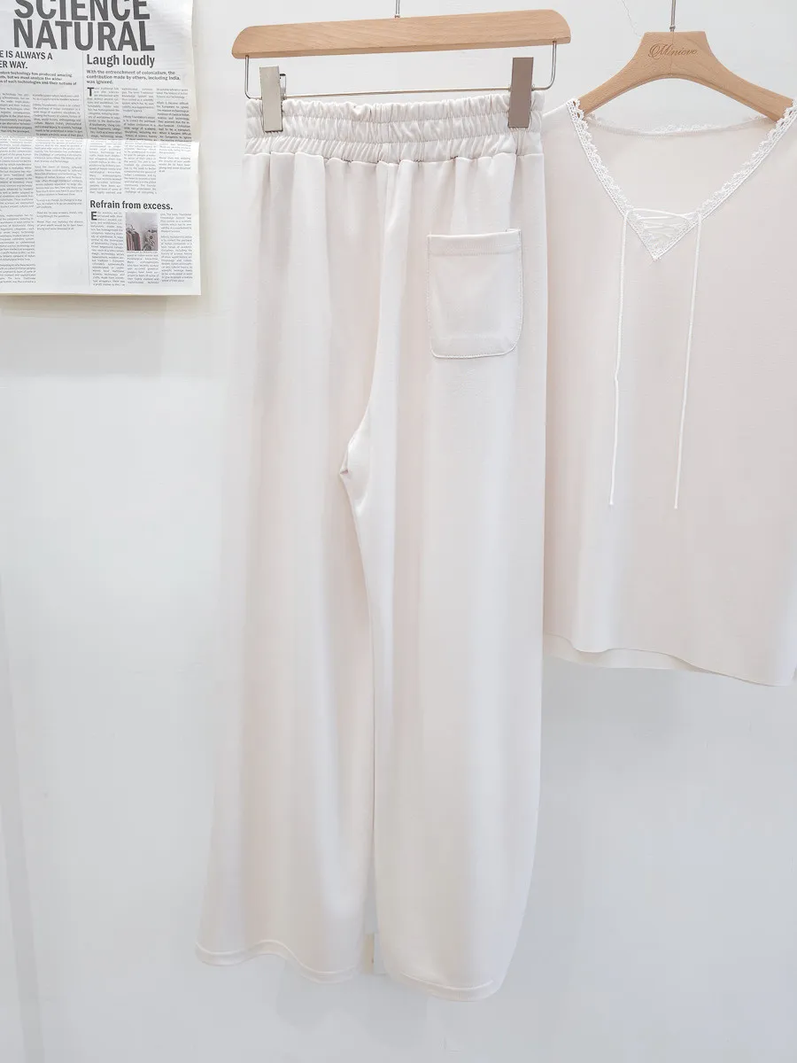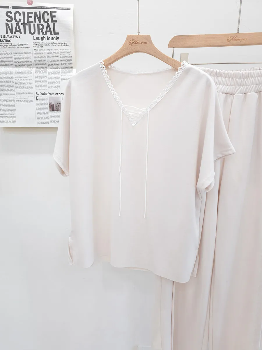 64.正韓 花邊綁帶領上衣棉褲Set 2色