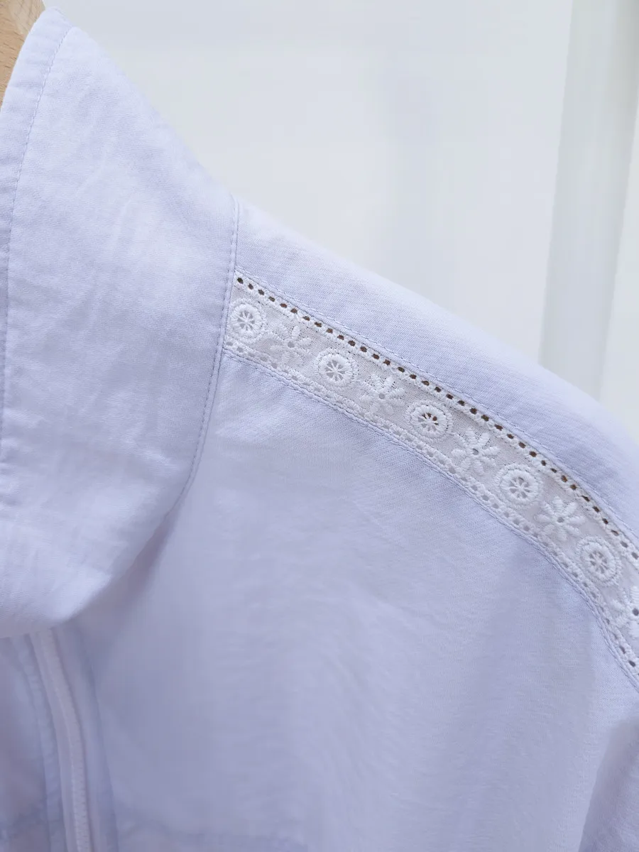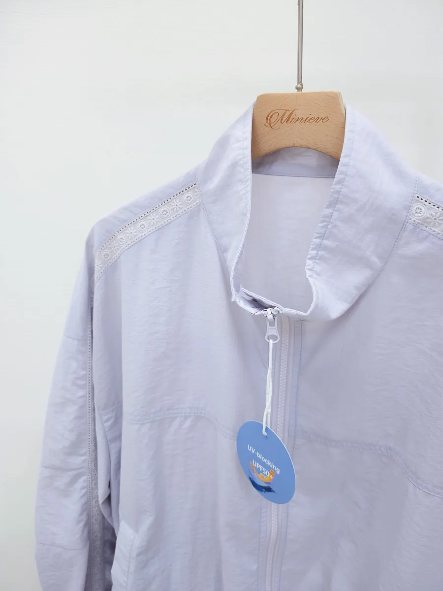 無內裡/拉鍊/無彈性/UPF50防曬棉+蕾絲
