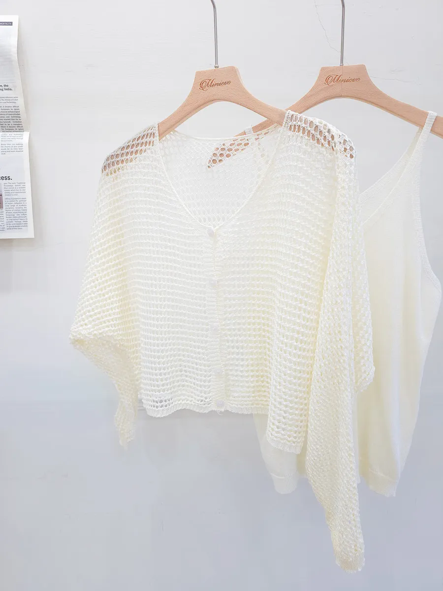 74.正韓 背心網格罩衫Set 2色