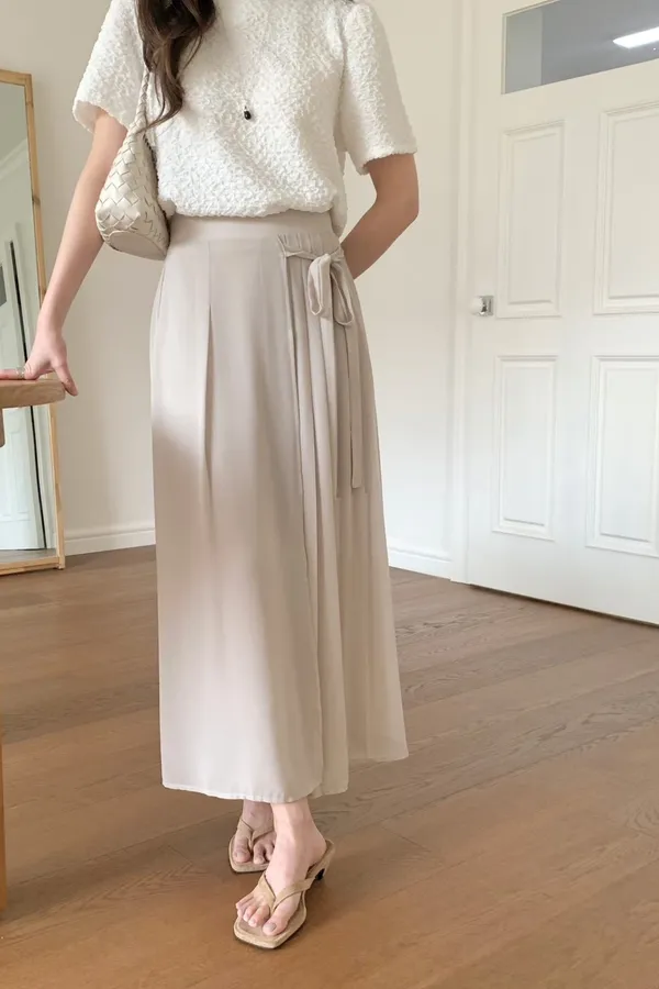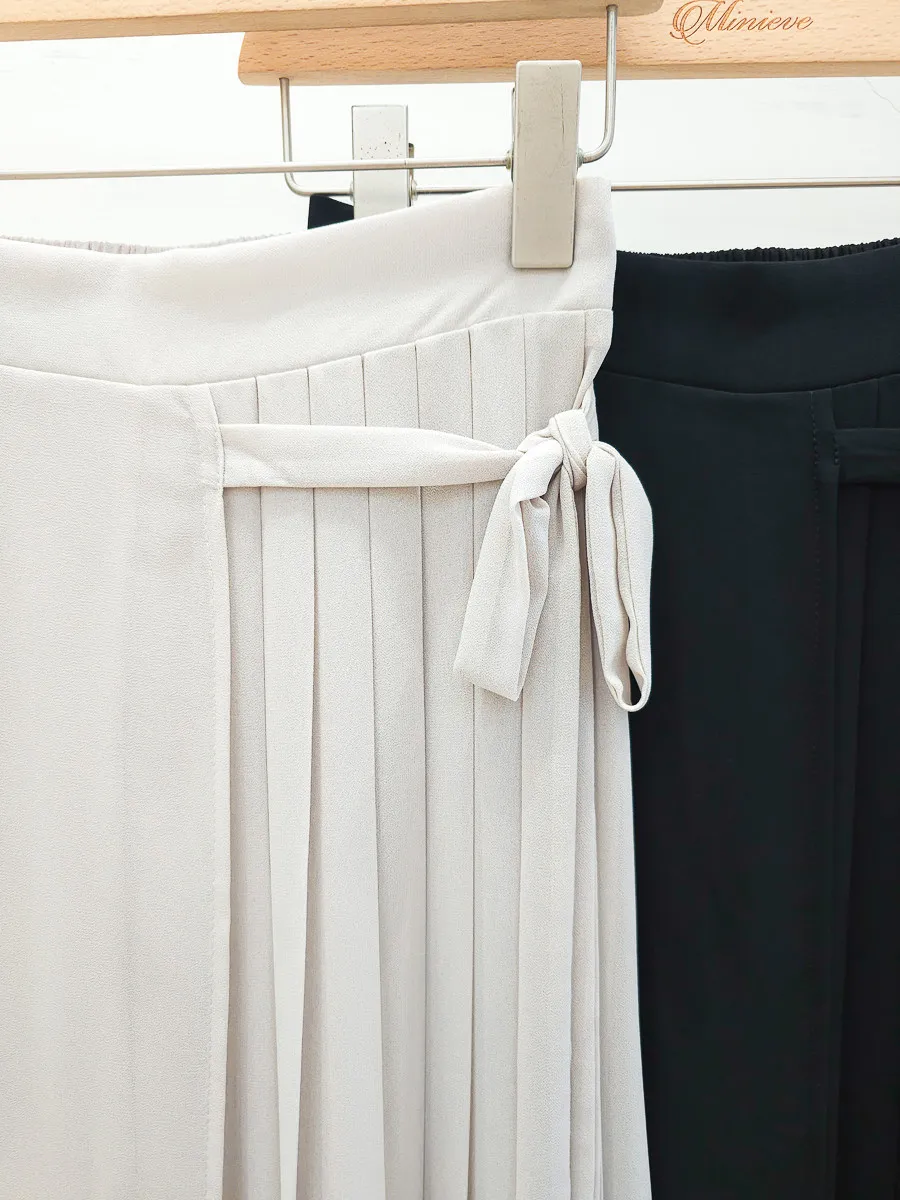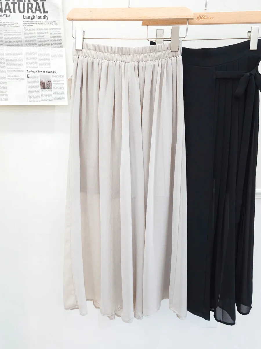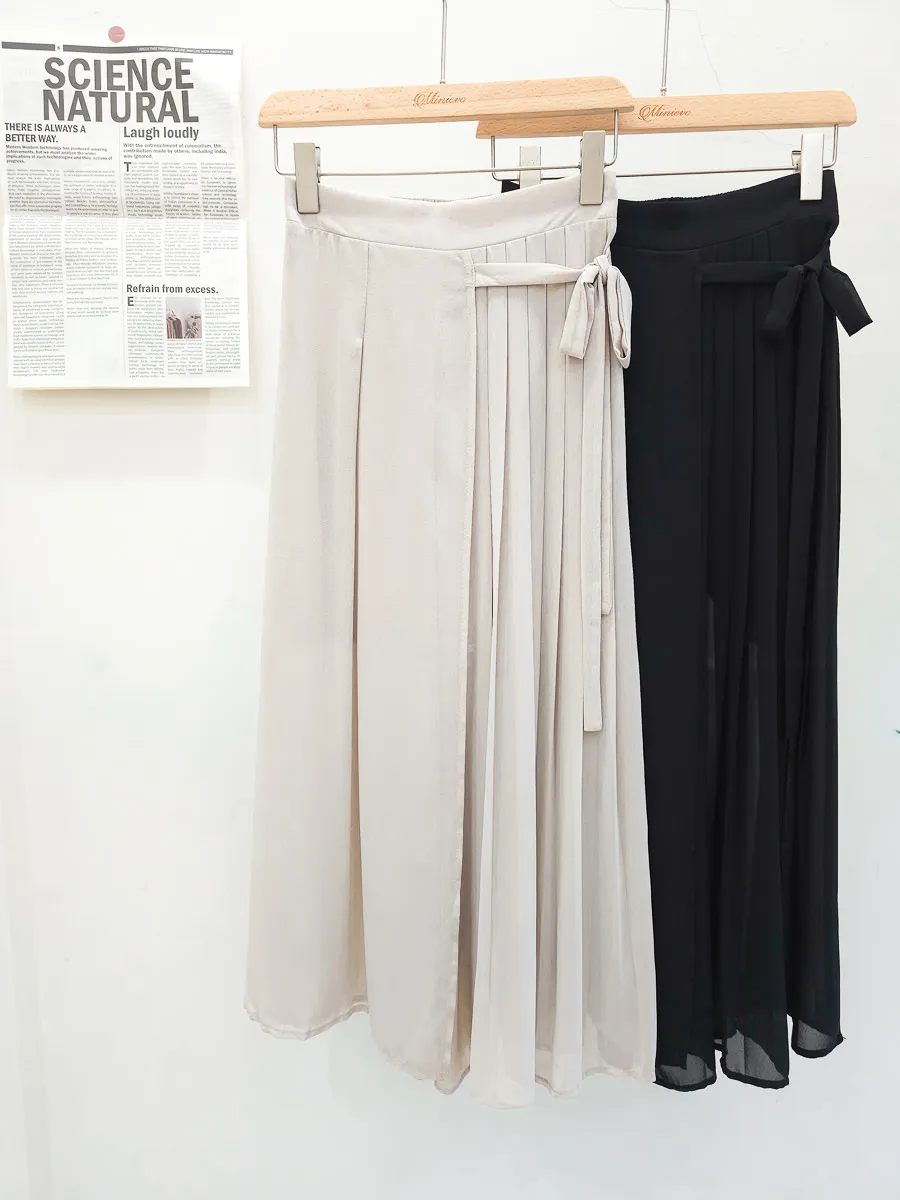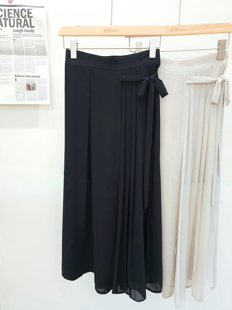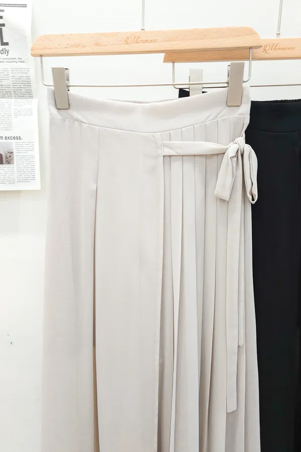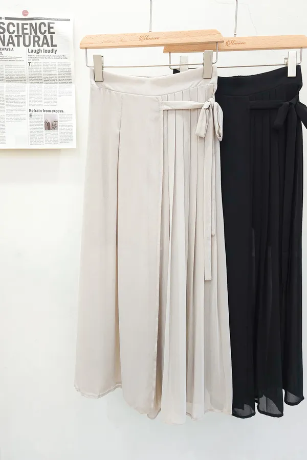83.正韓 側打摺綁帶棉紗寬褲裙 2色
