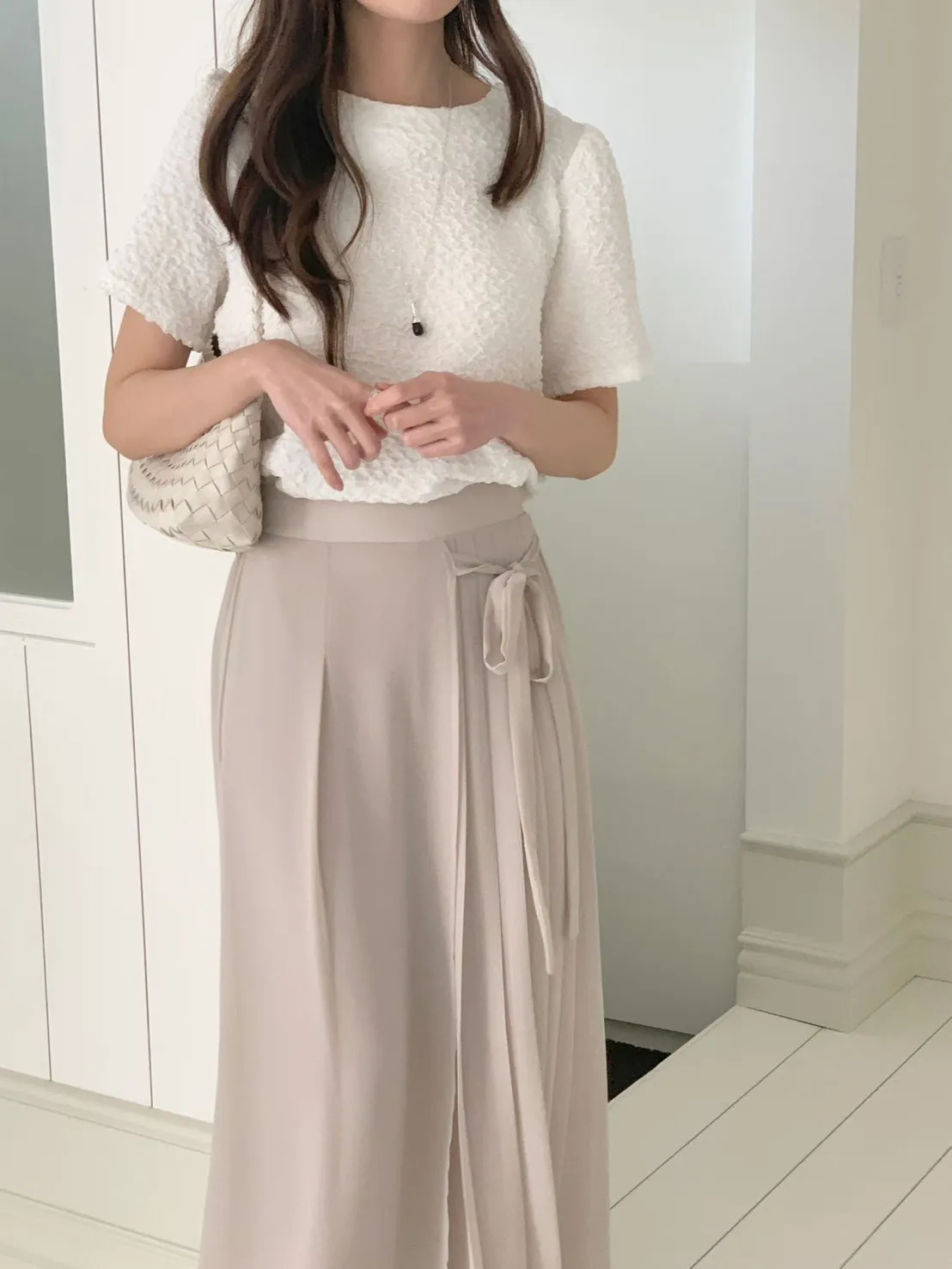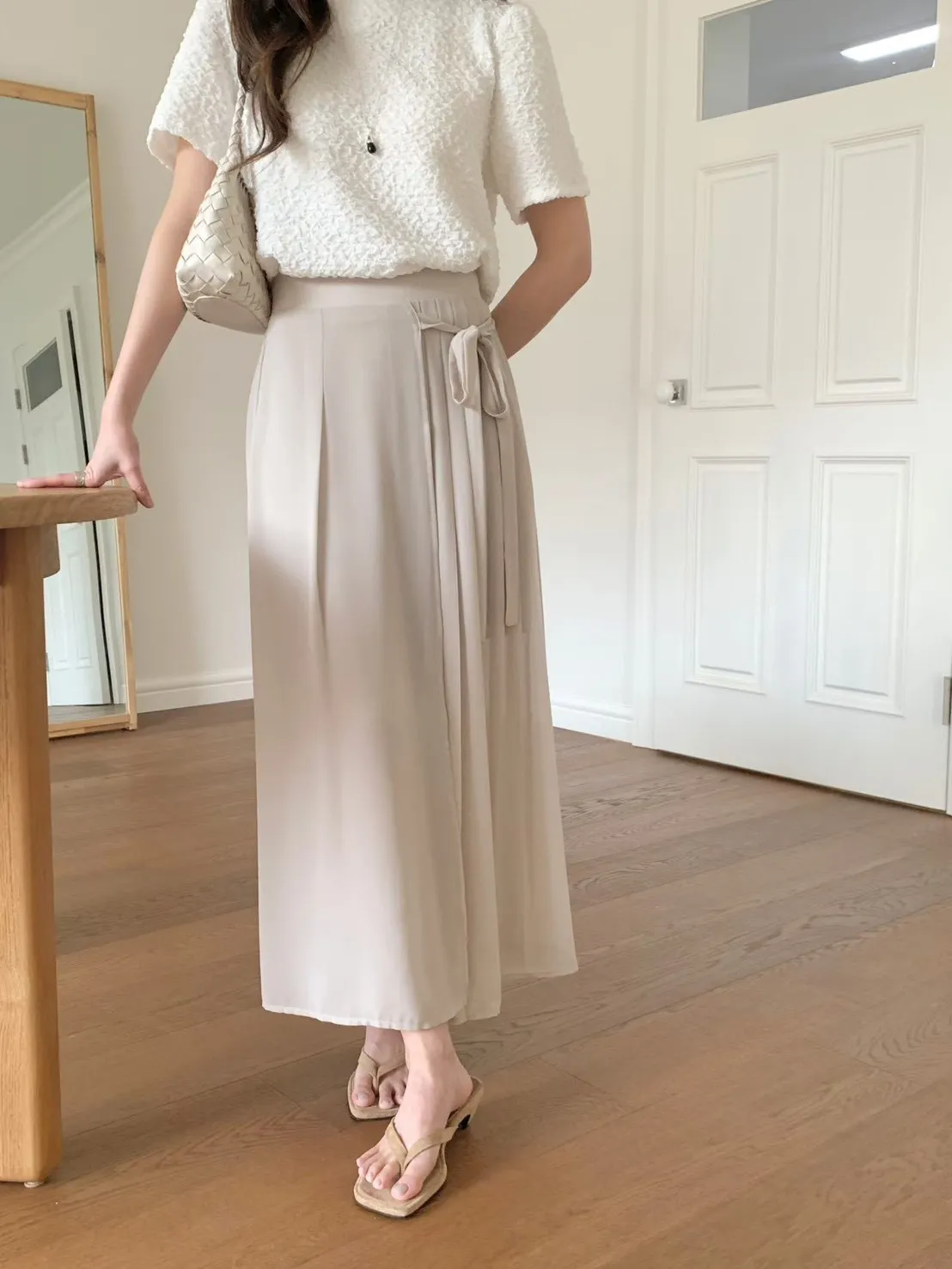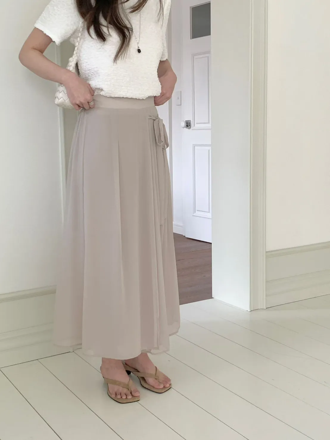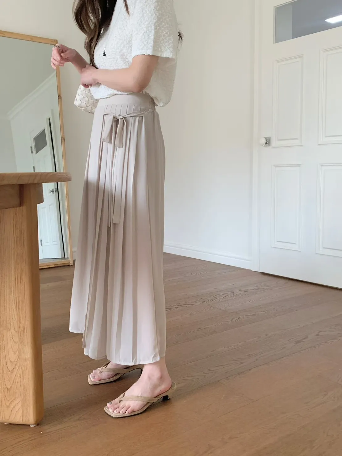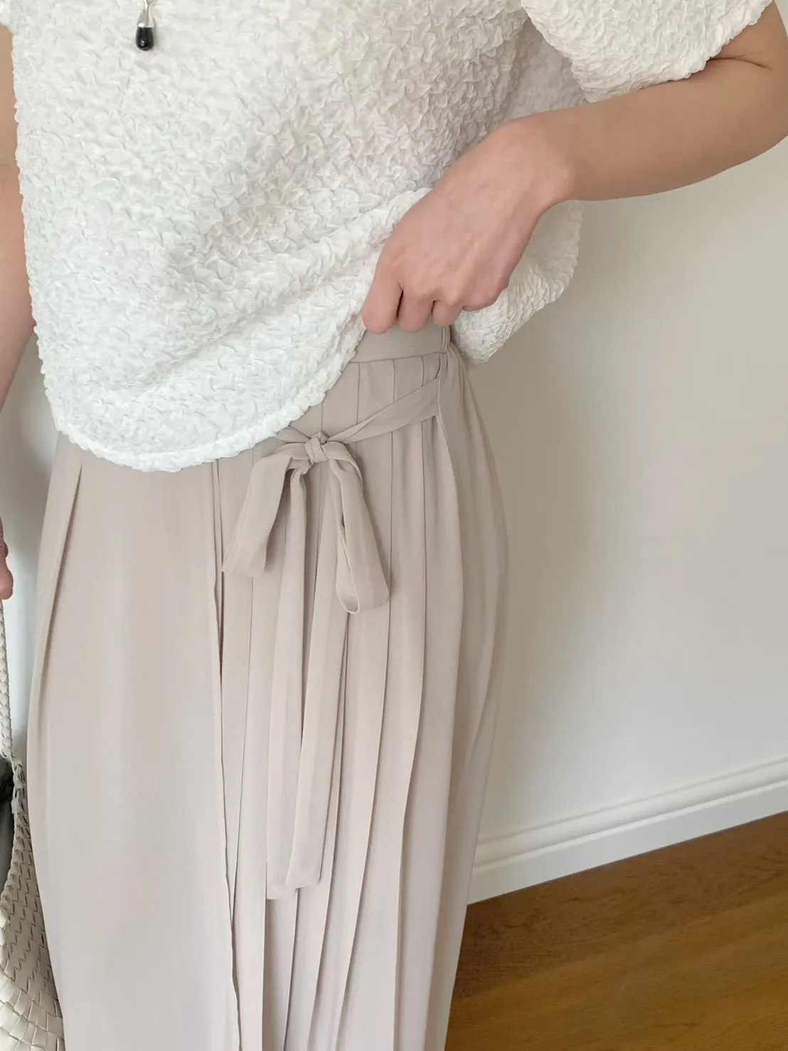 83.正韓 側打摺綁帶棉紗寬褲裙 2色