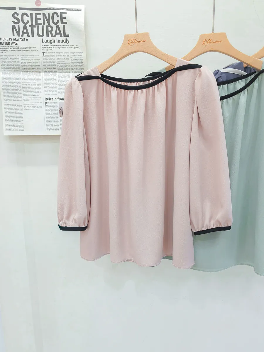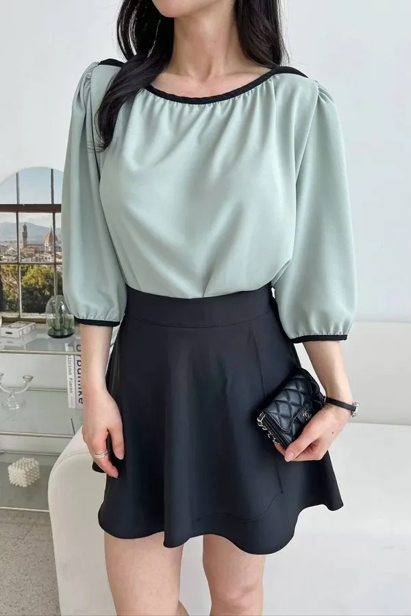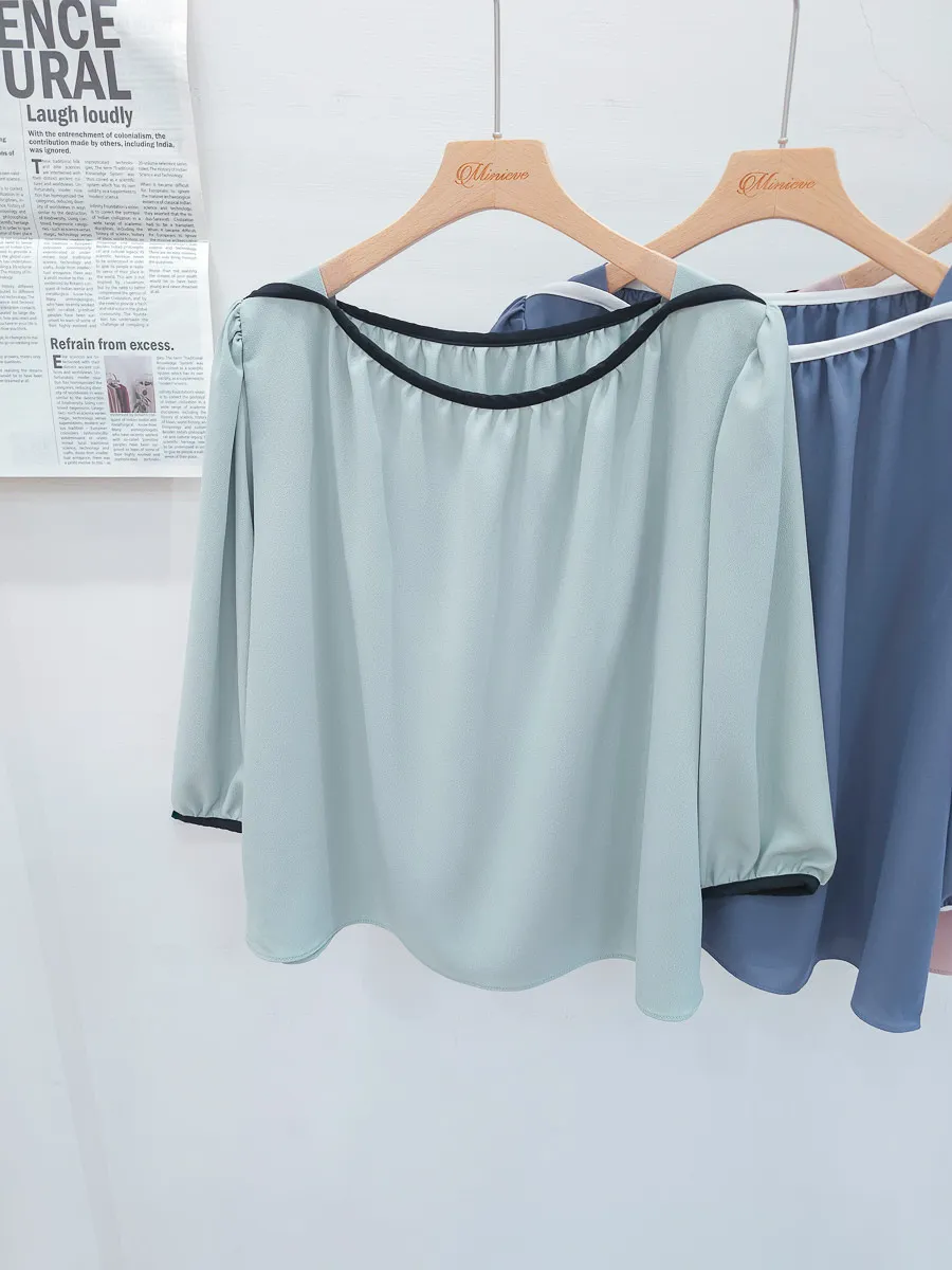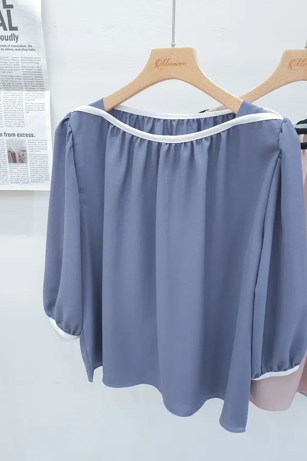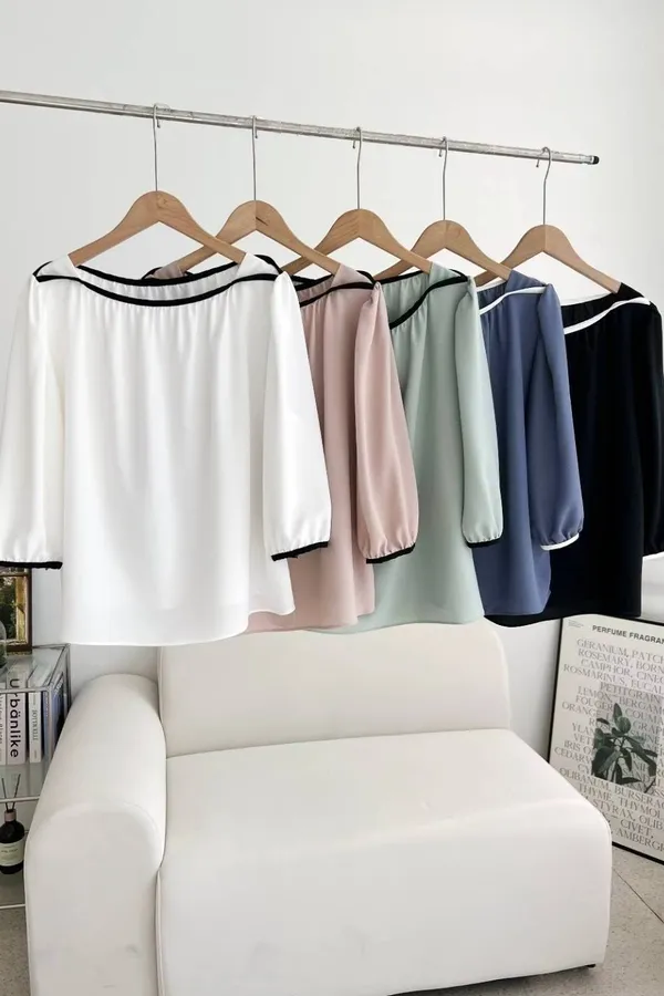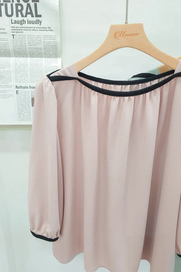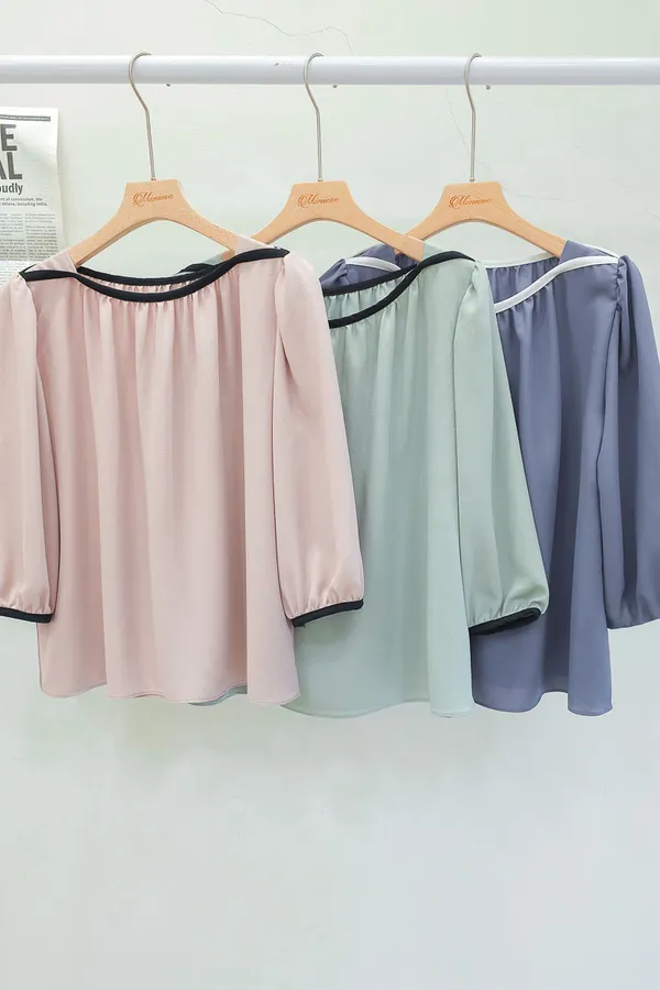 84.正韓 撞色滾邊包肩上衣 5色