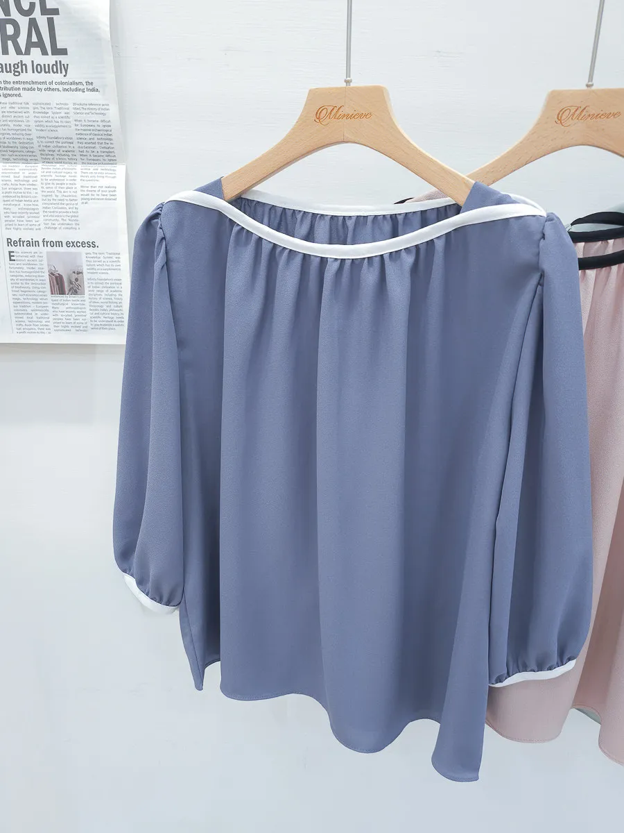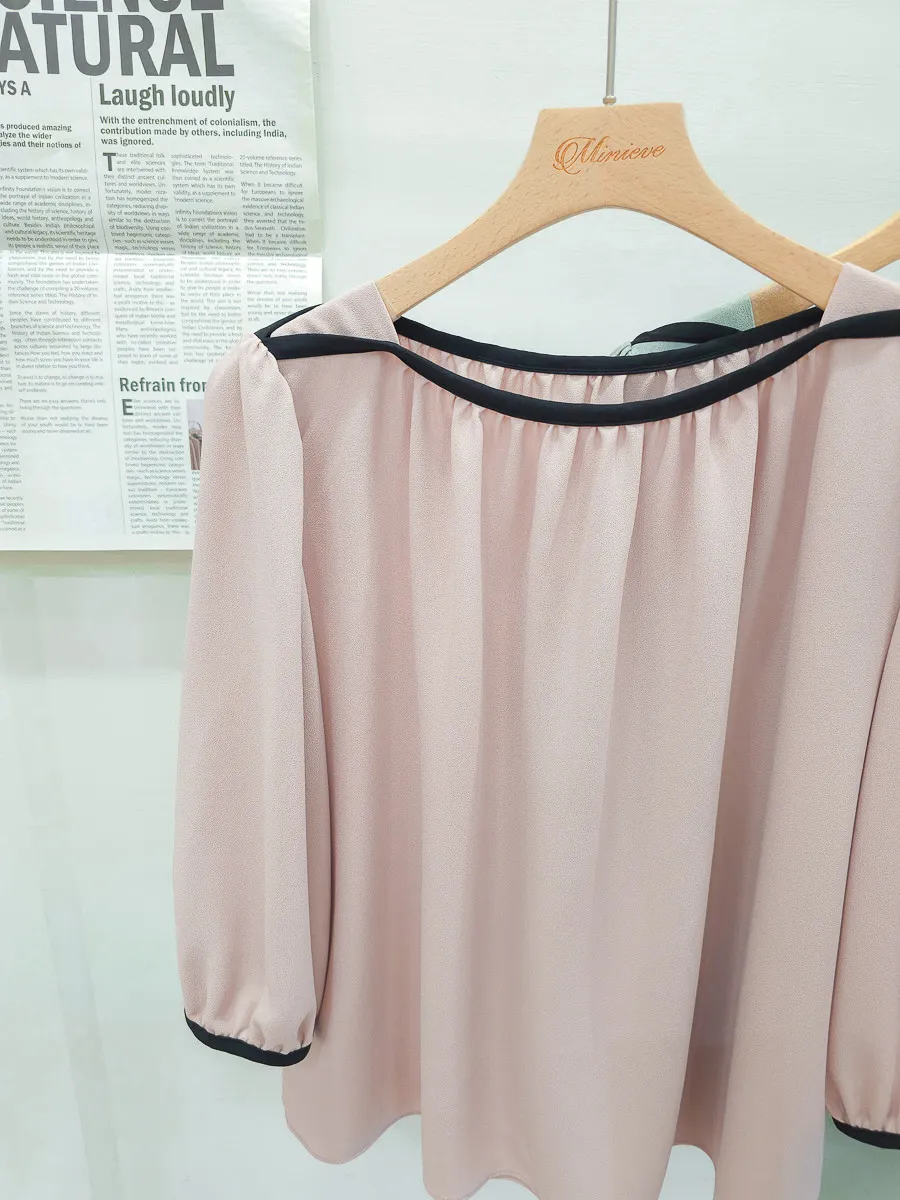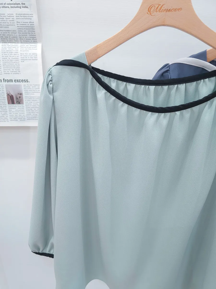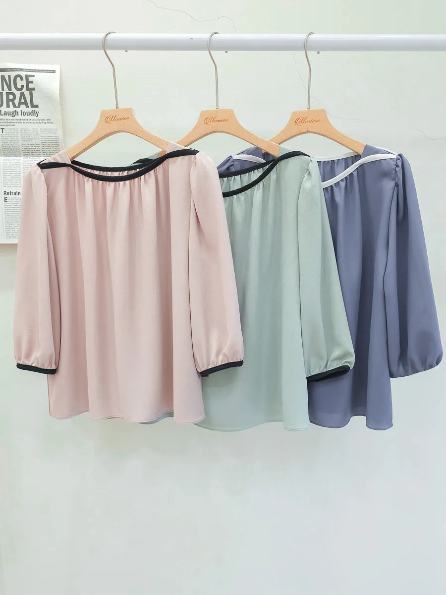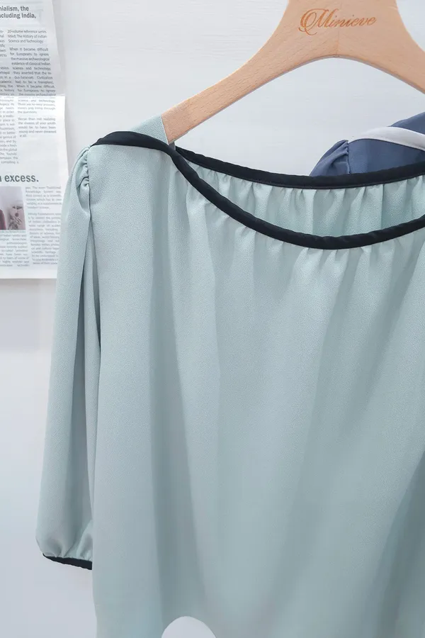 84.正韓 撞色滾邊包肩上衣 5色