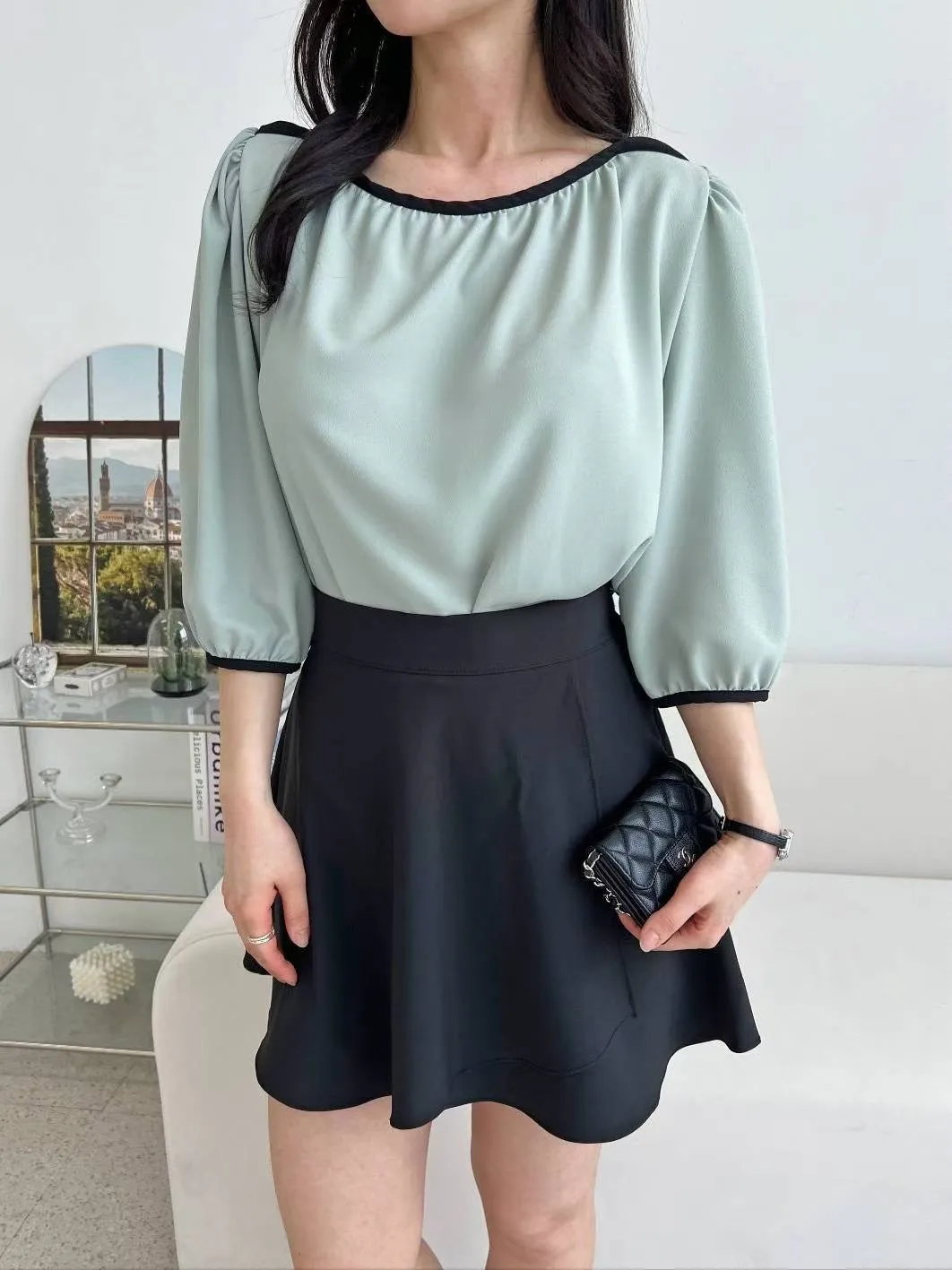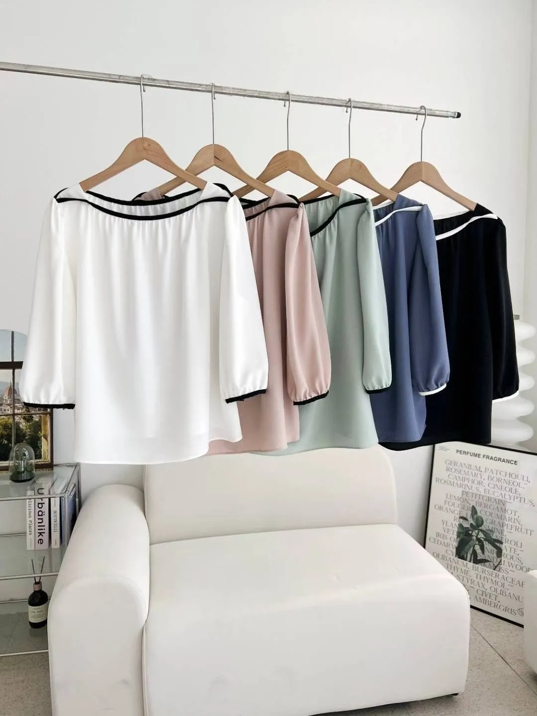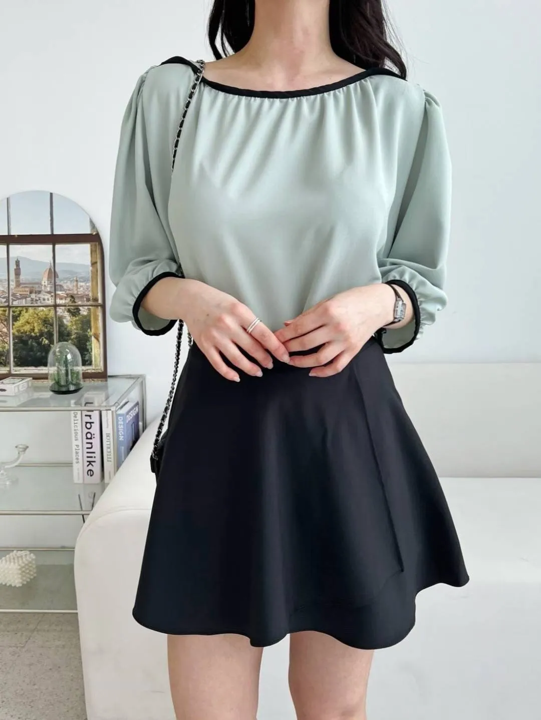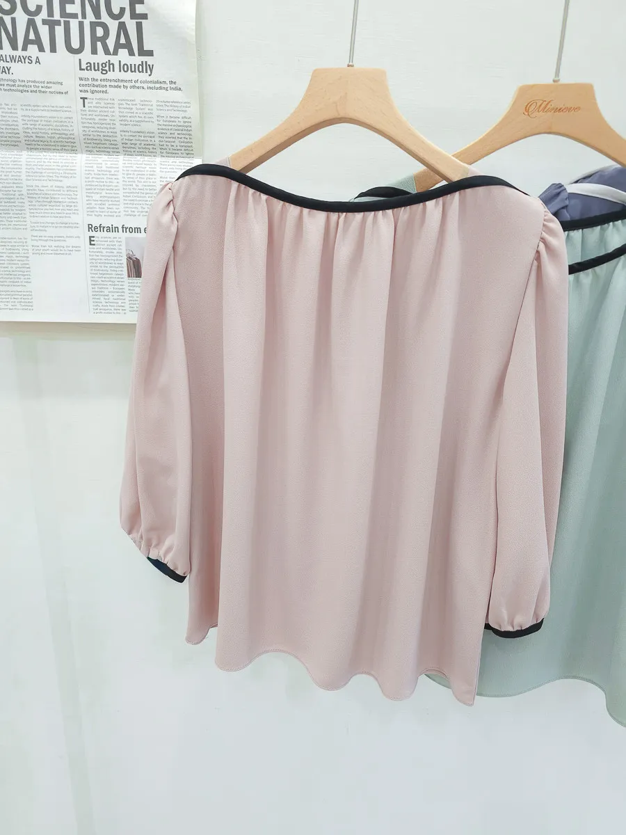 84.正韓 撞色滾邊包肩上衣 5色