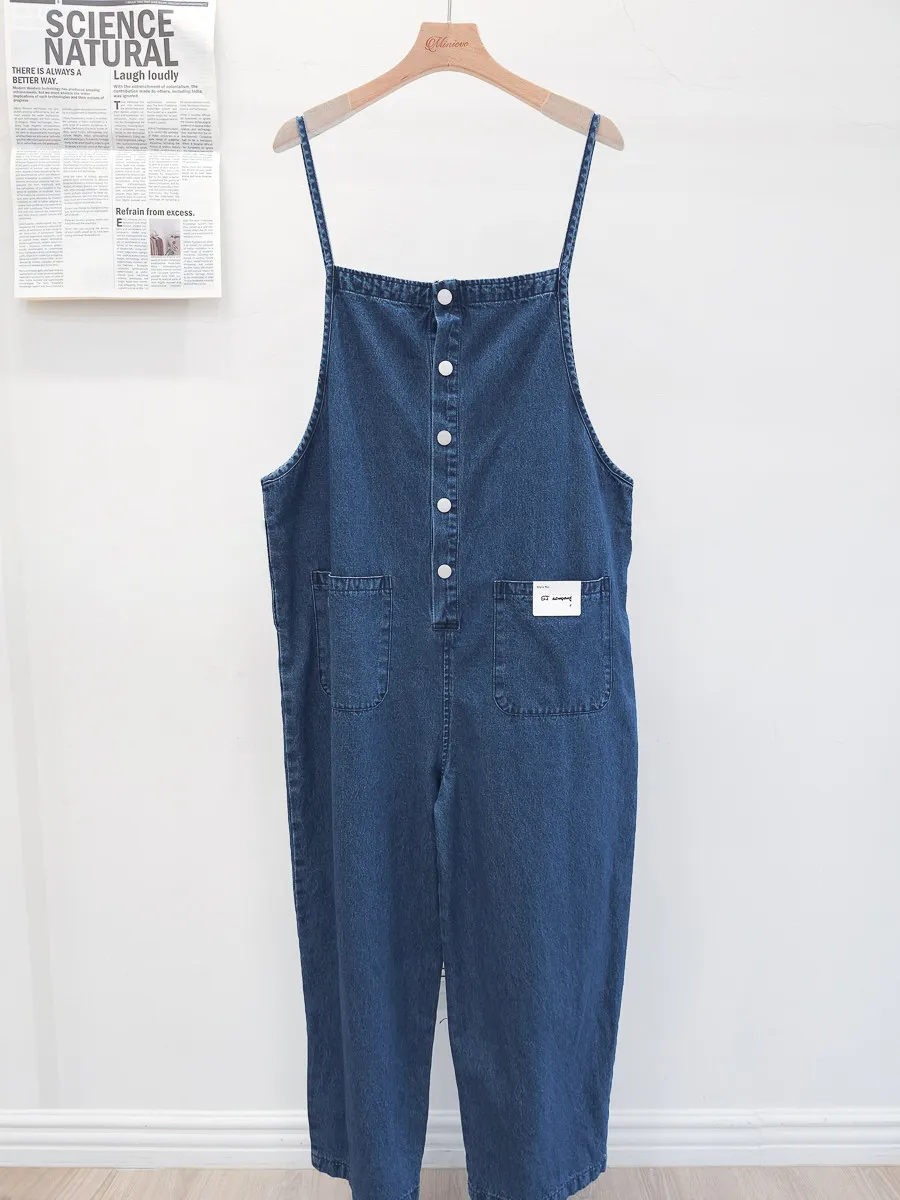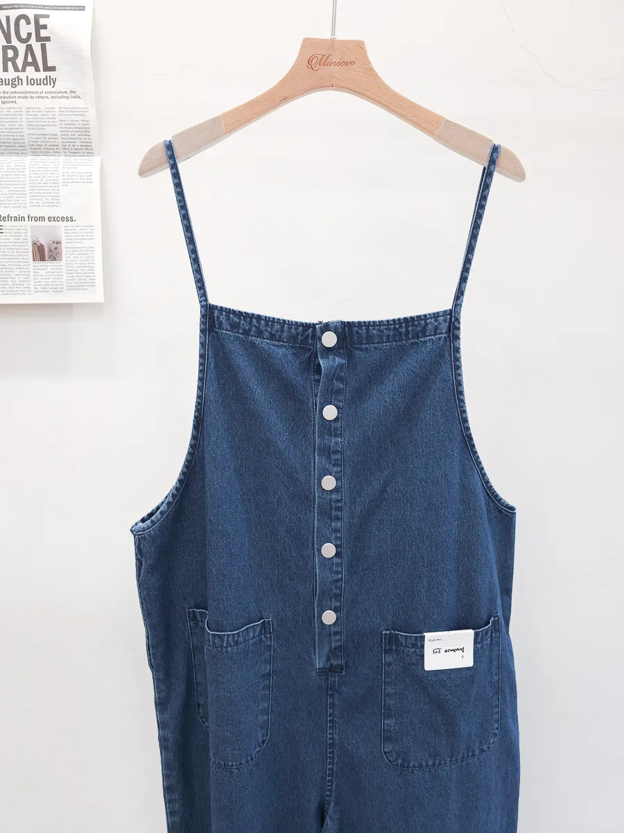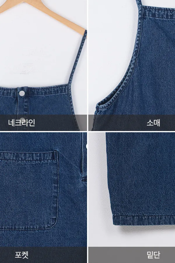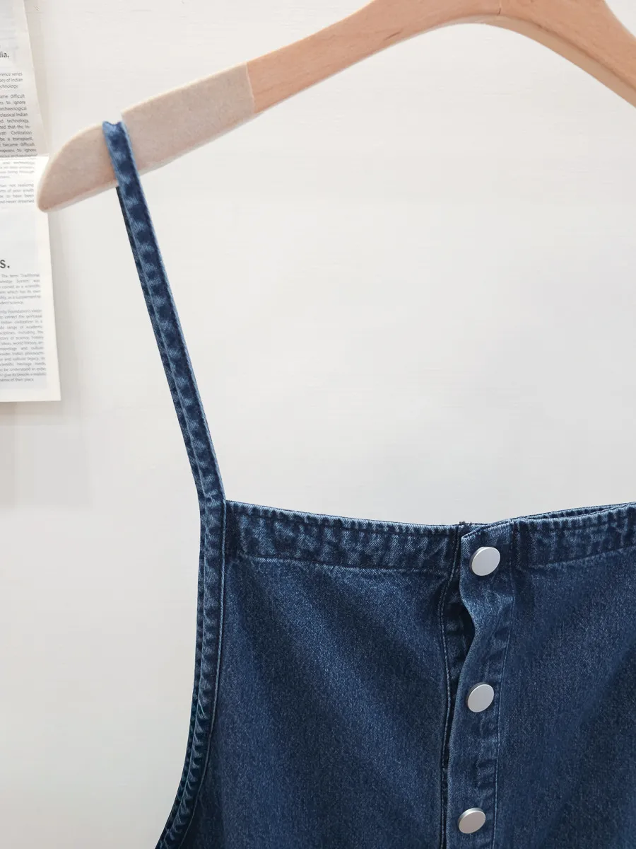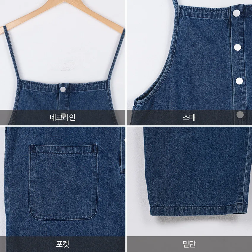 正韓 排釦口袋細帶牛仔吊帶褲