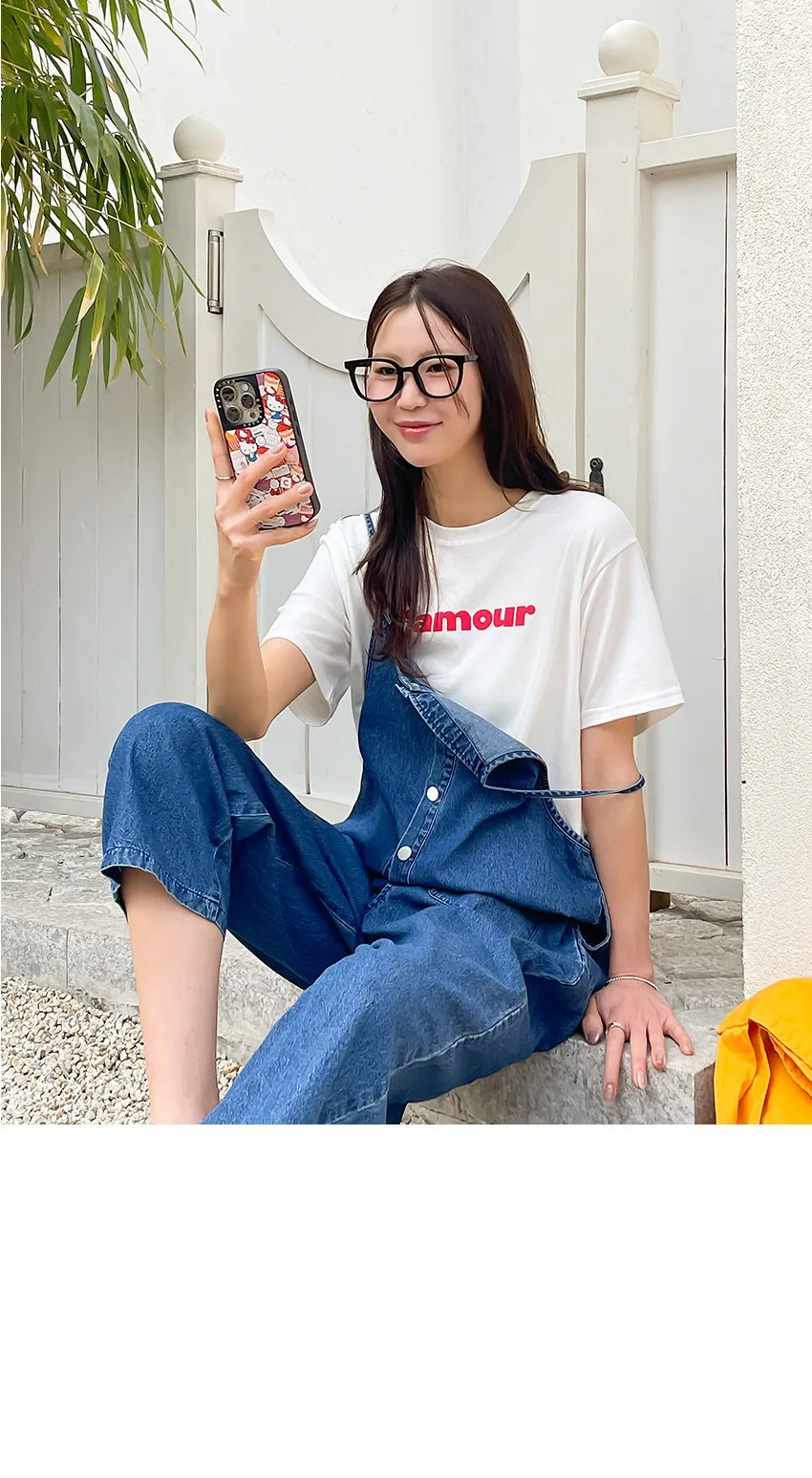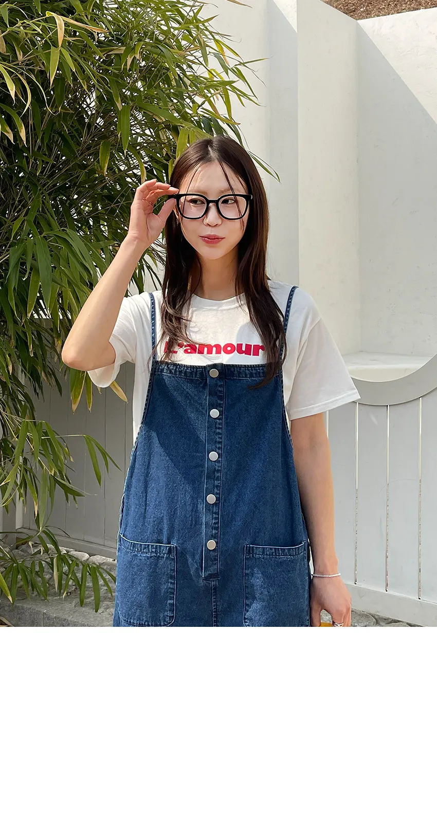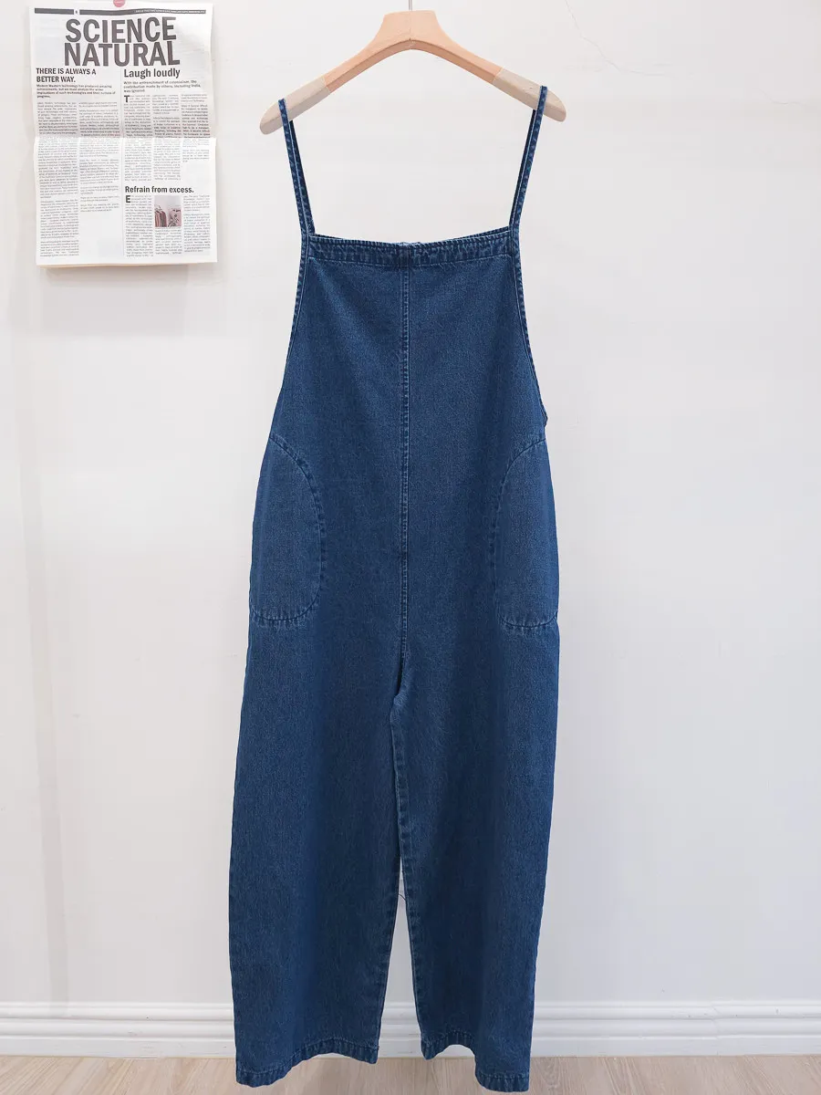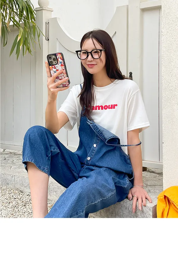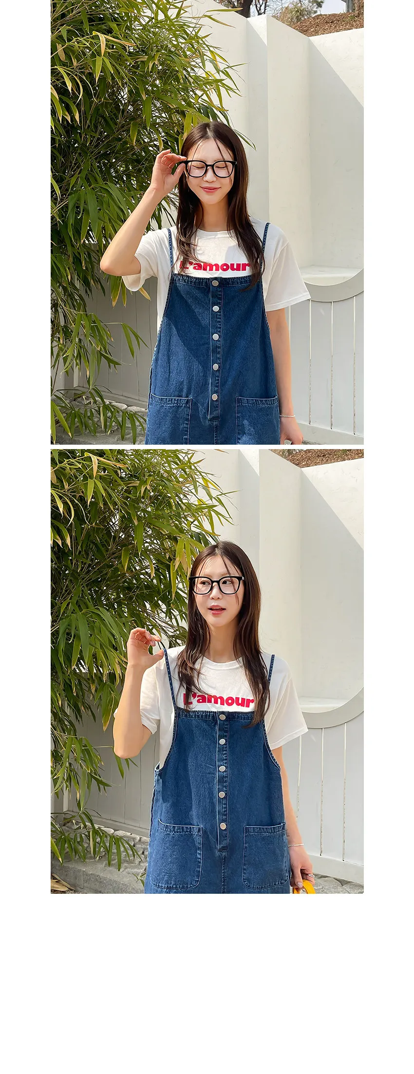 正韓 排釦口袋細帶牛仔吊帶褲
