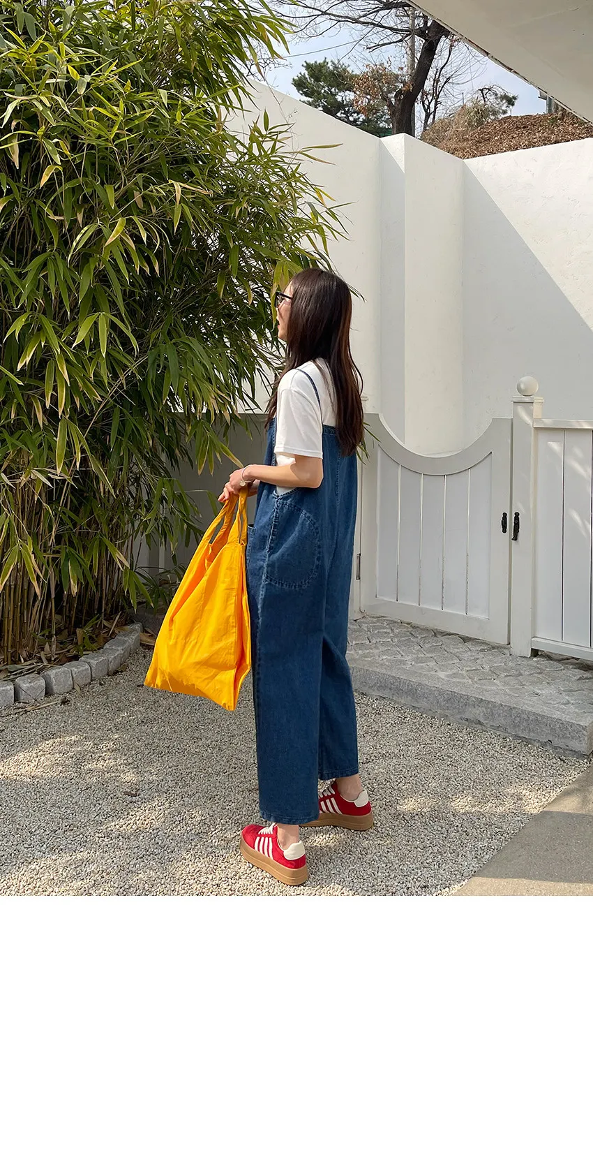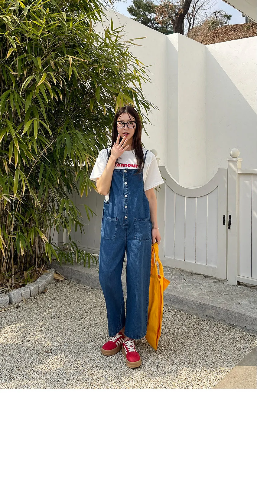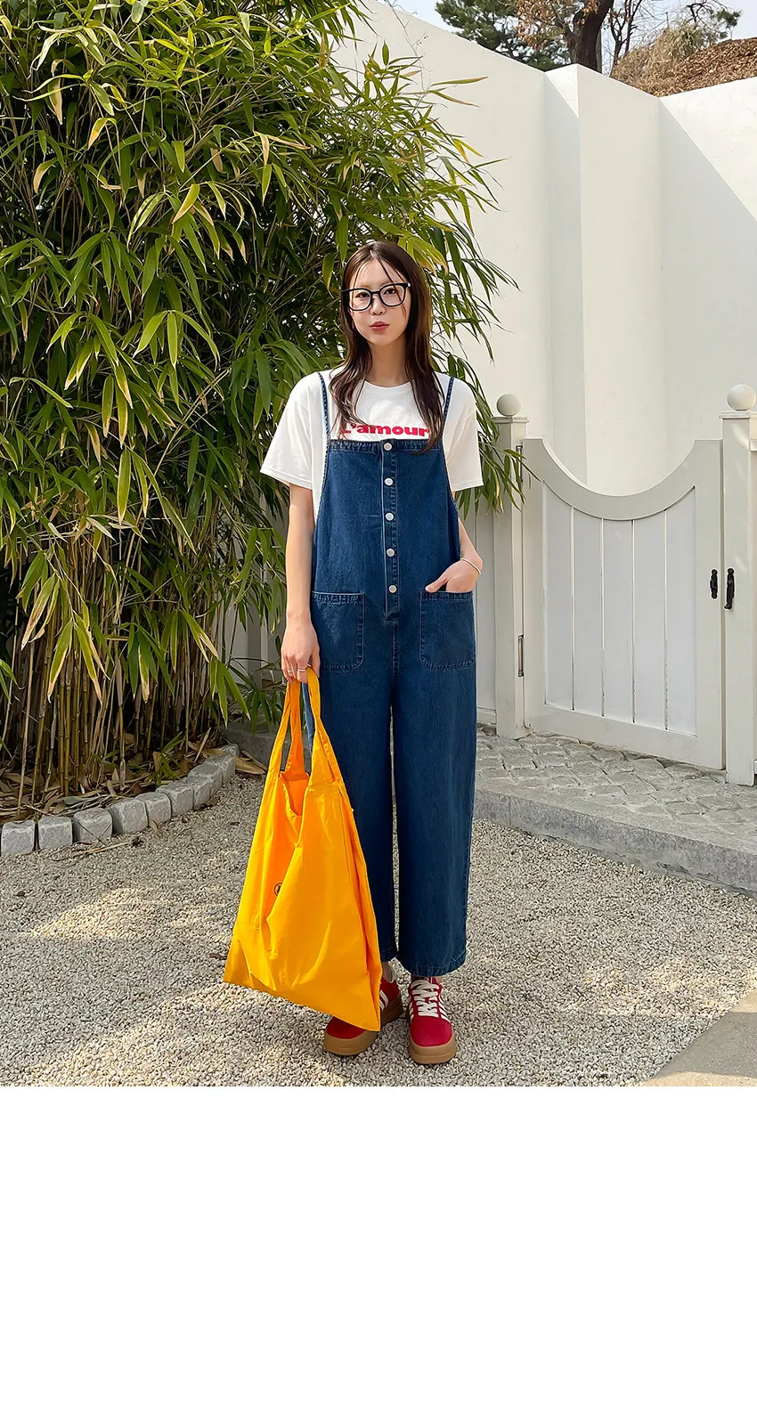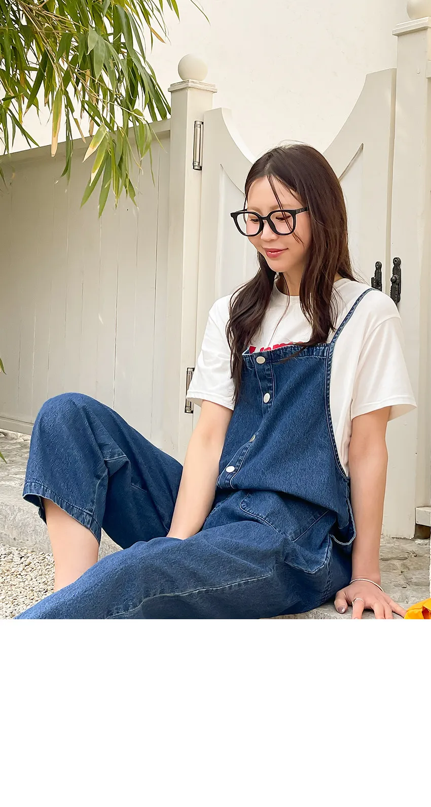 正韓 排釦口袋細帶牛仔吊帶褲