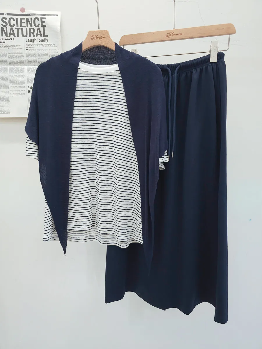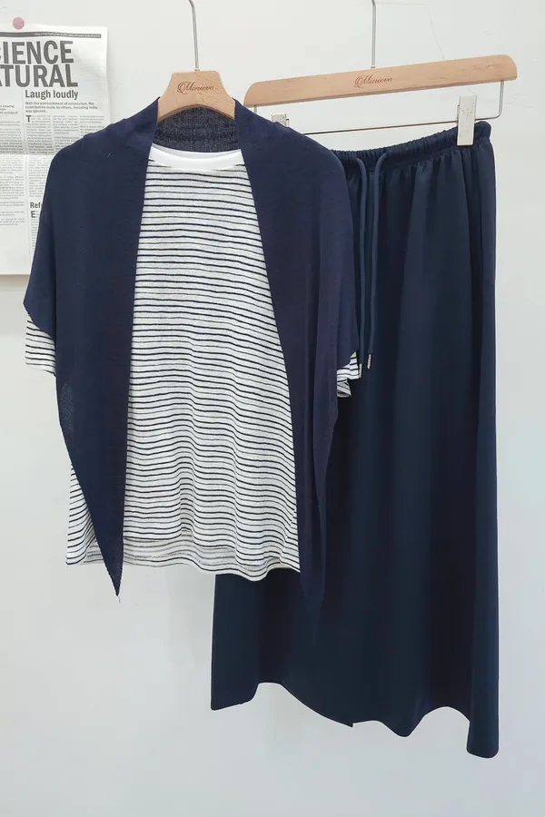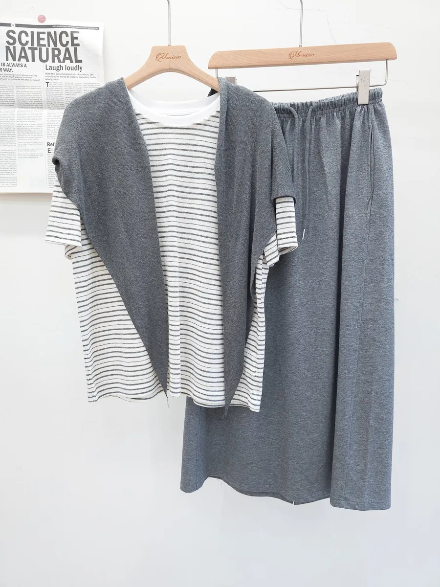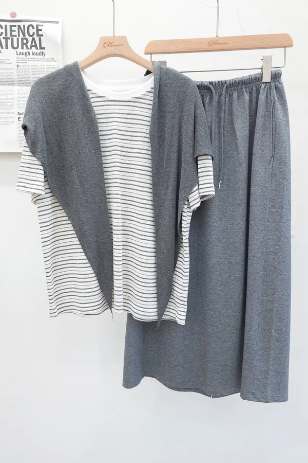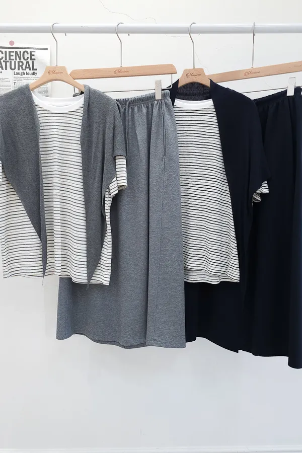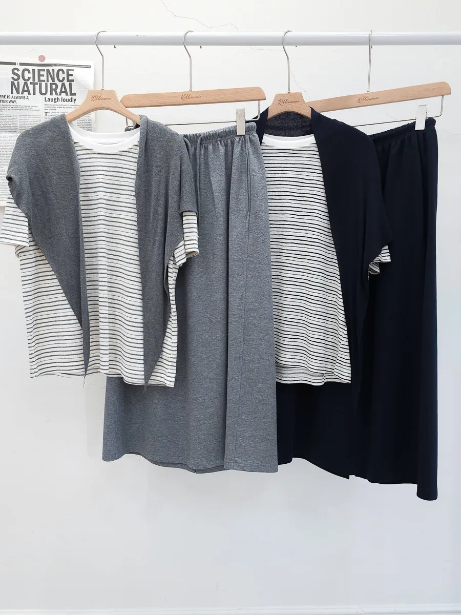 99.條紋涼感棉料上衣中裙3件Set 2色