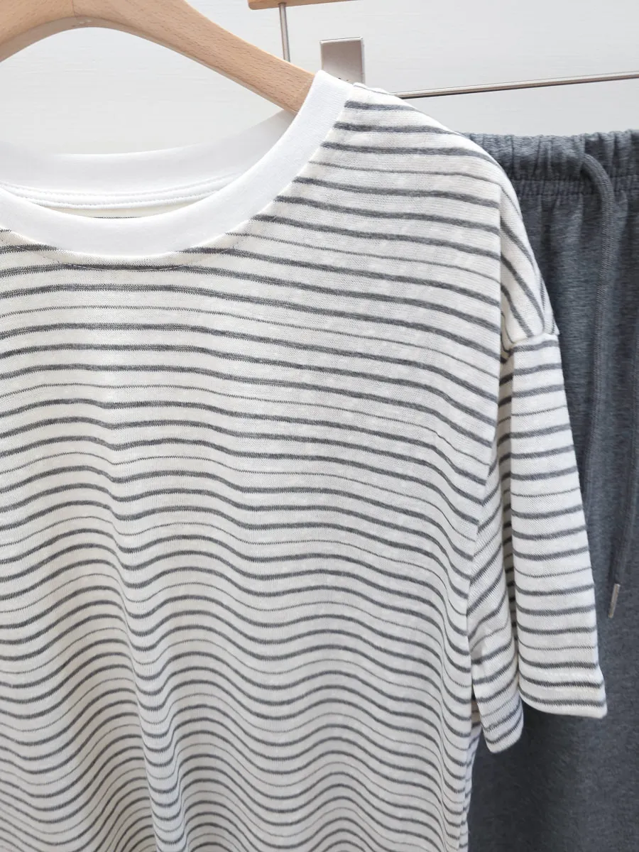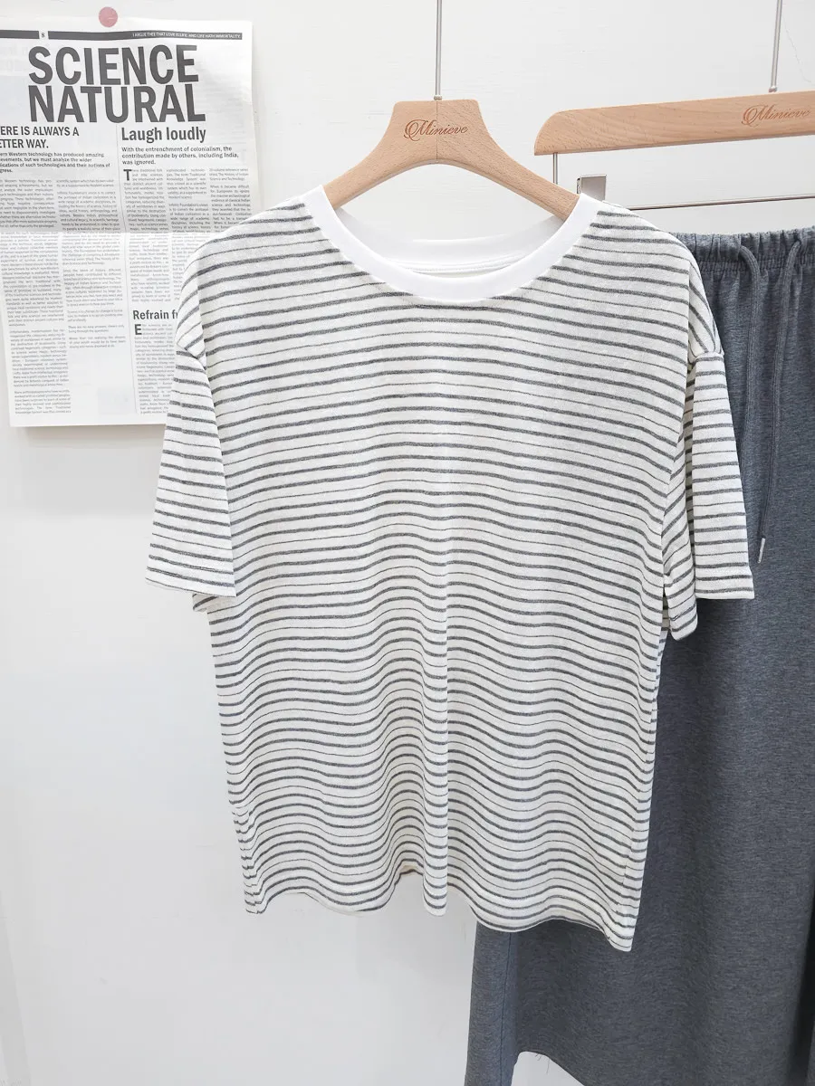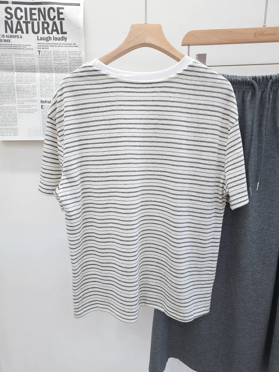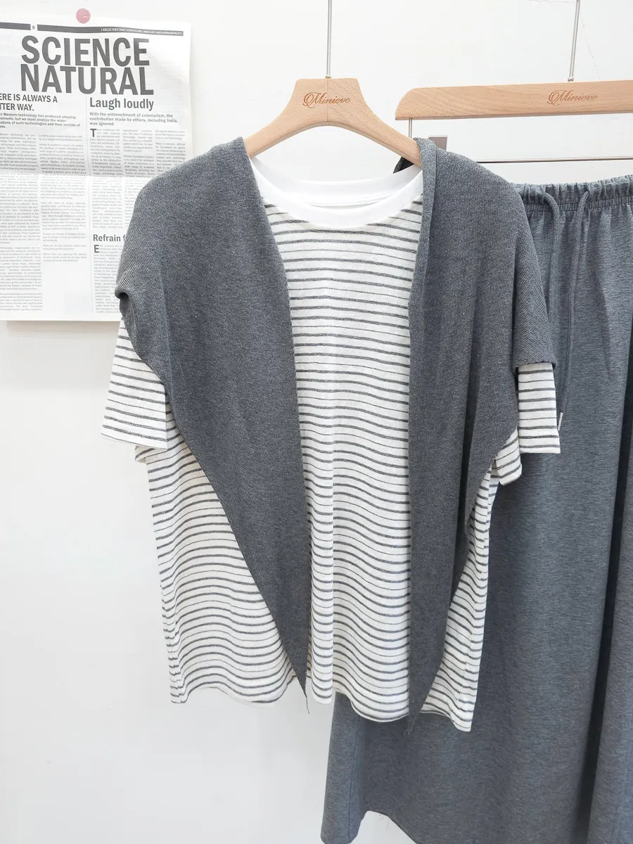 99.條紋涼感棉料上衣中裙3件Set 2色